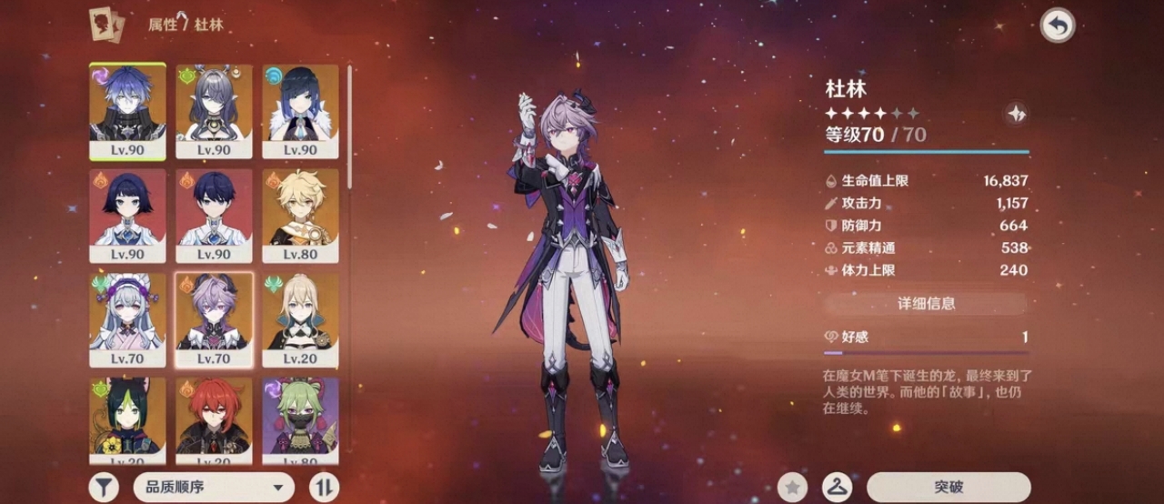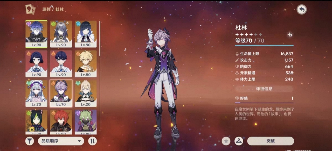 原神官服杜林+专武+黎明破晓之史冒险等级35深渊未开