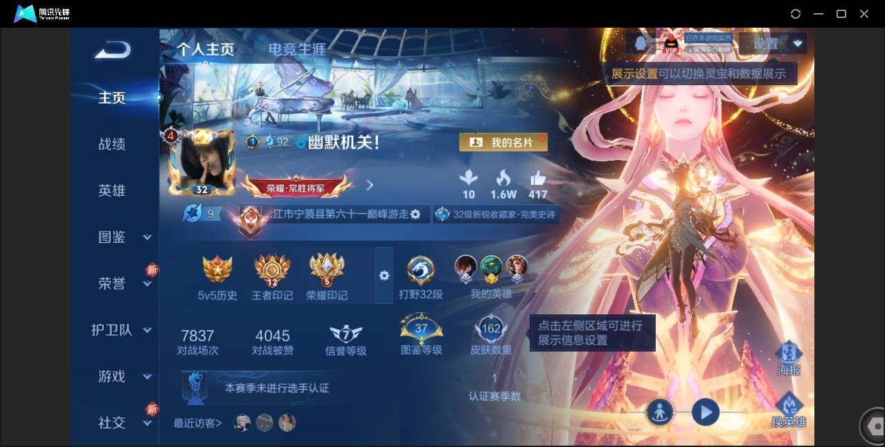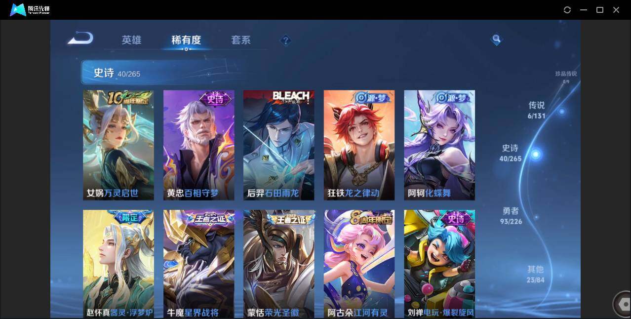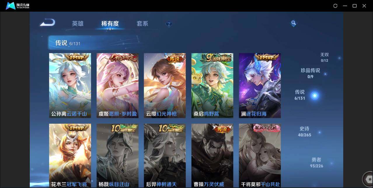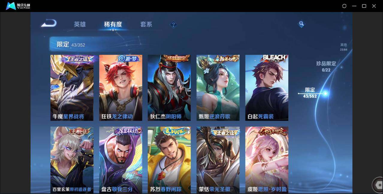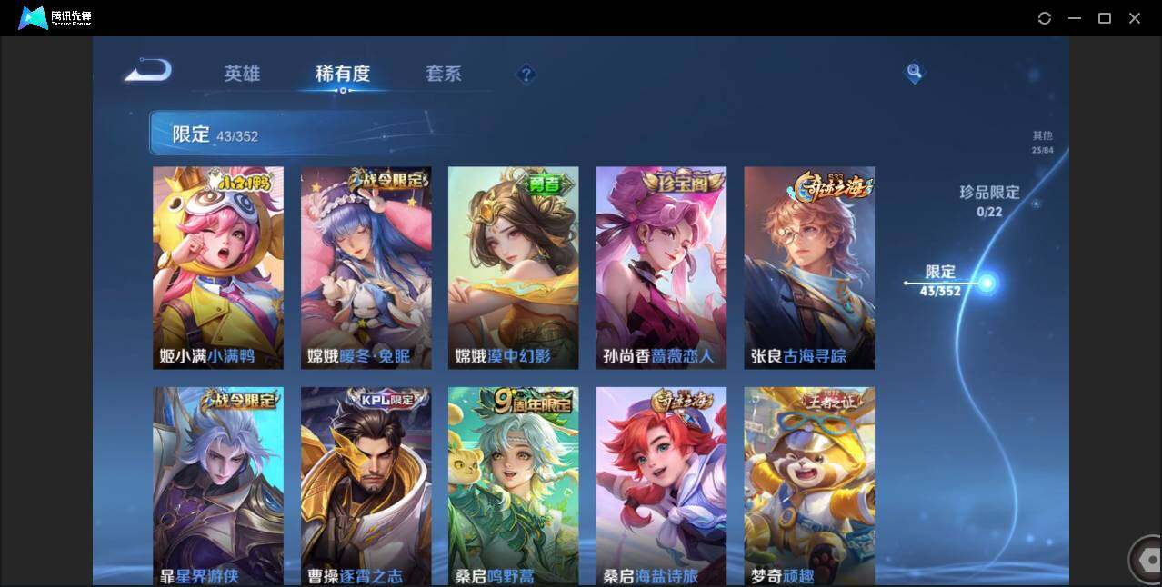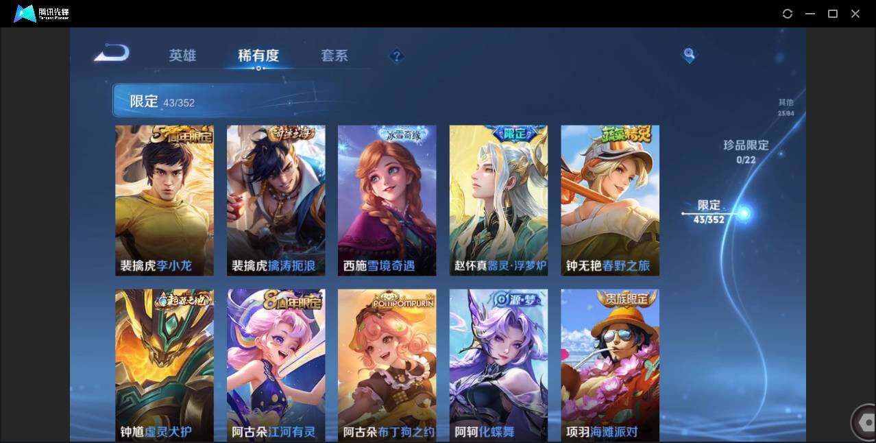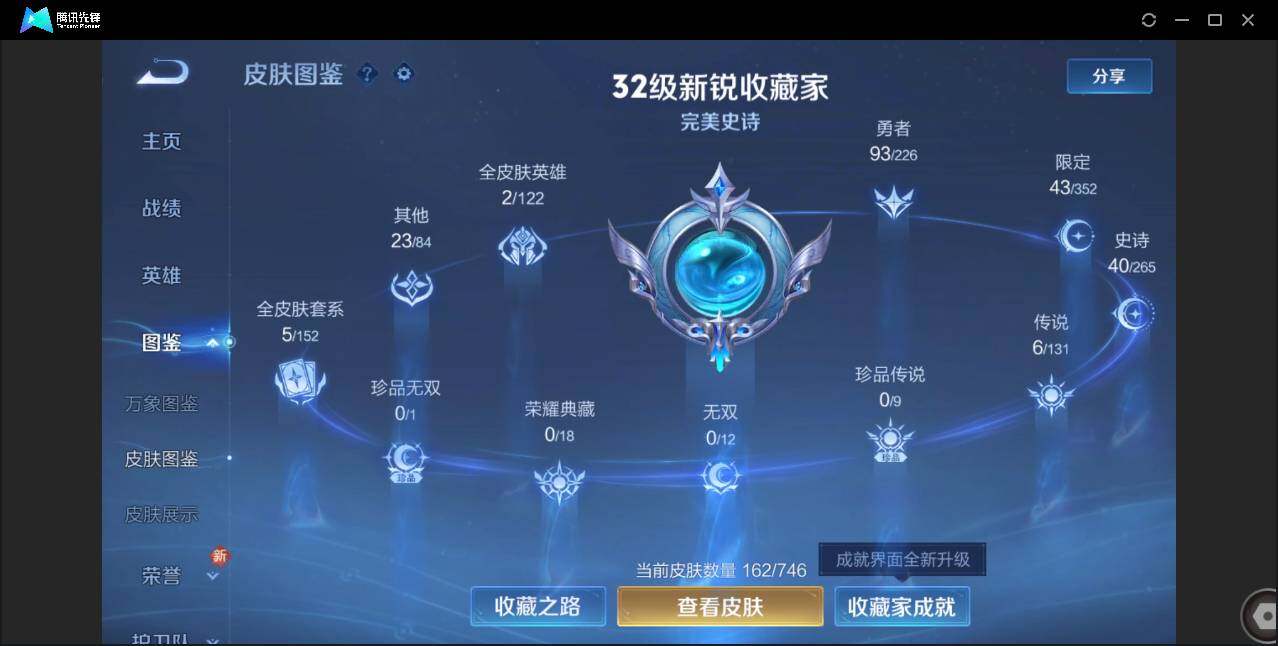 无二次-贵4-125英雄-162皮肤-6传说-40史诗-43限定-5按键