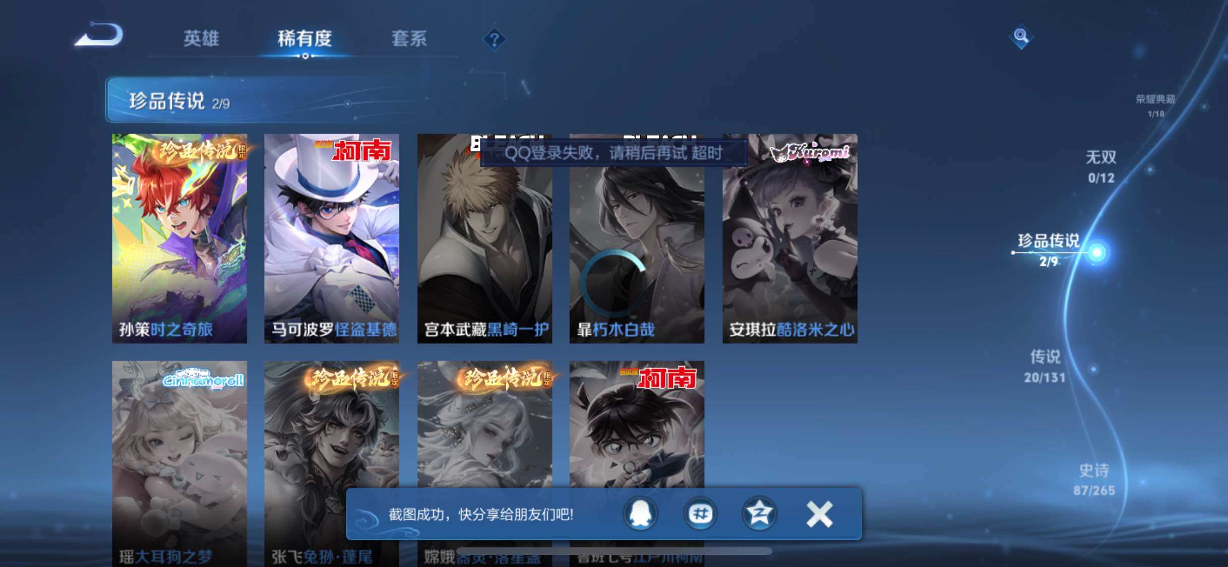 【336皮1典藏20传说4个万战 九霄神辉 怪盗基德 愿照九州拓 琥珀纪元 无