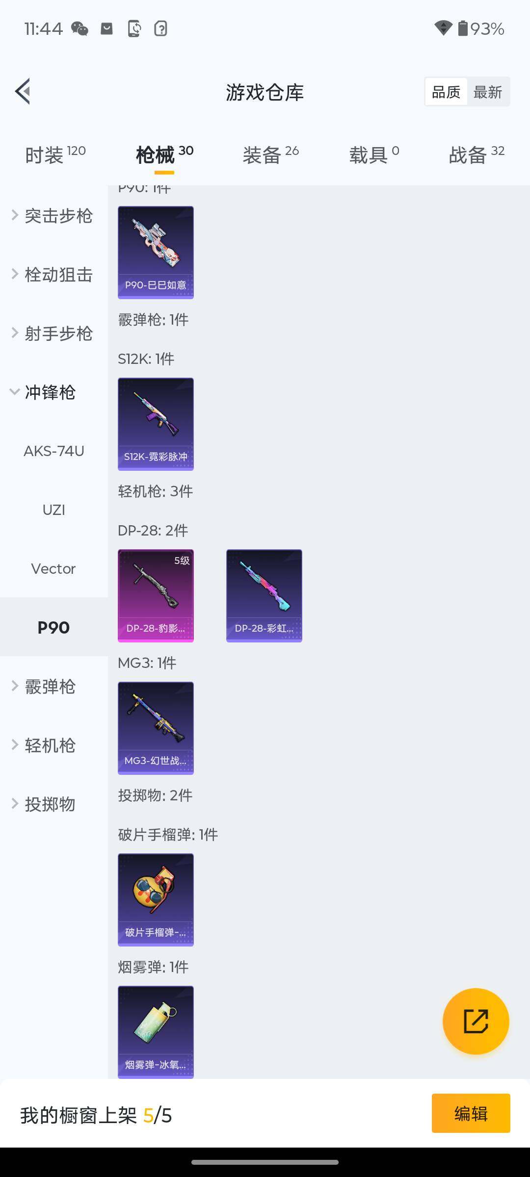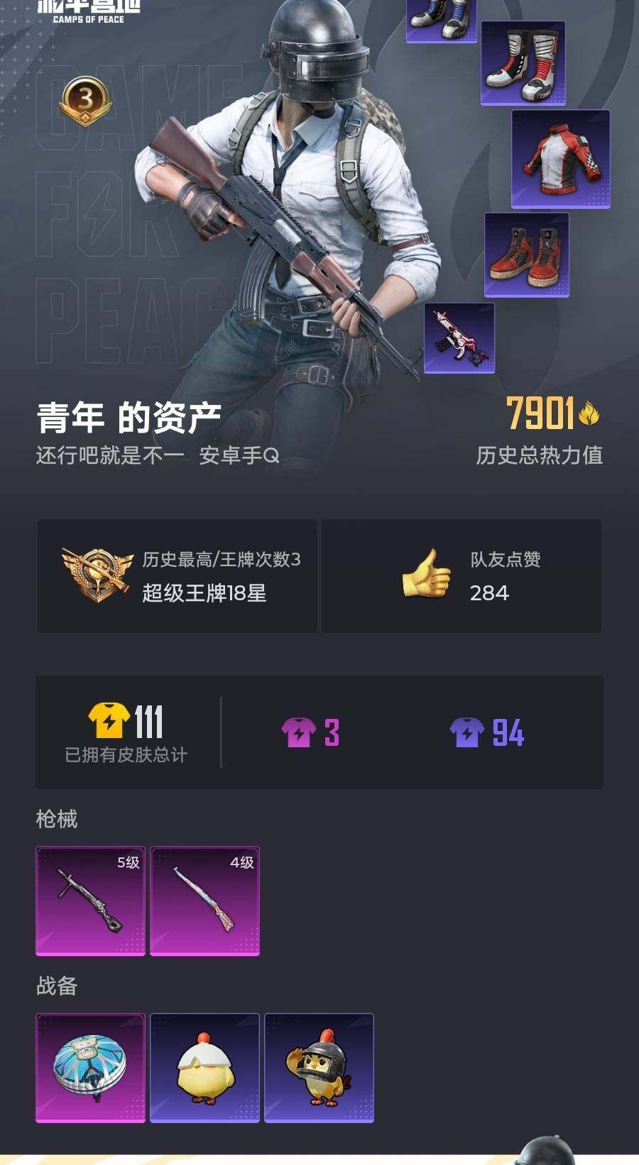 【粉色枪皮等级】:Kar98K-巳巳如意(四级),DP-28-豹影疾电(五级)