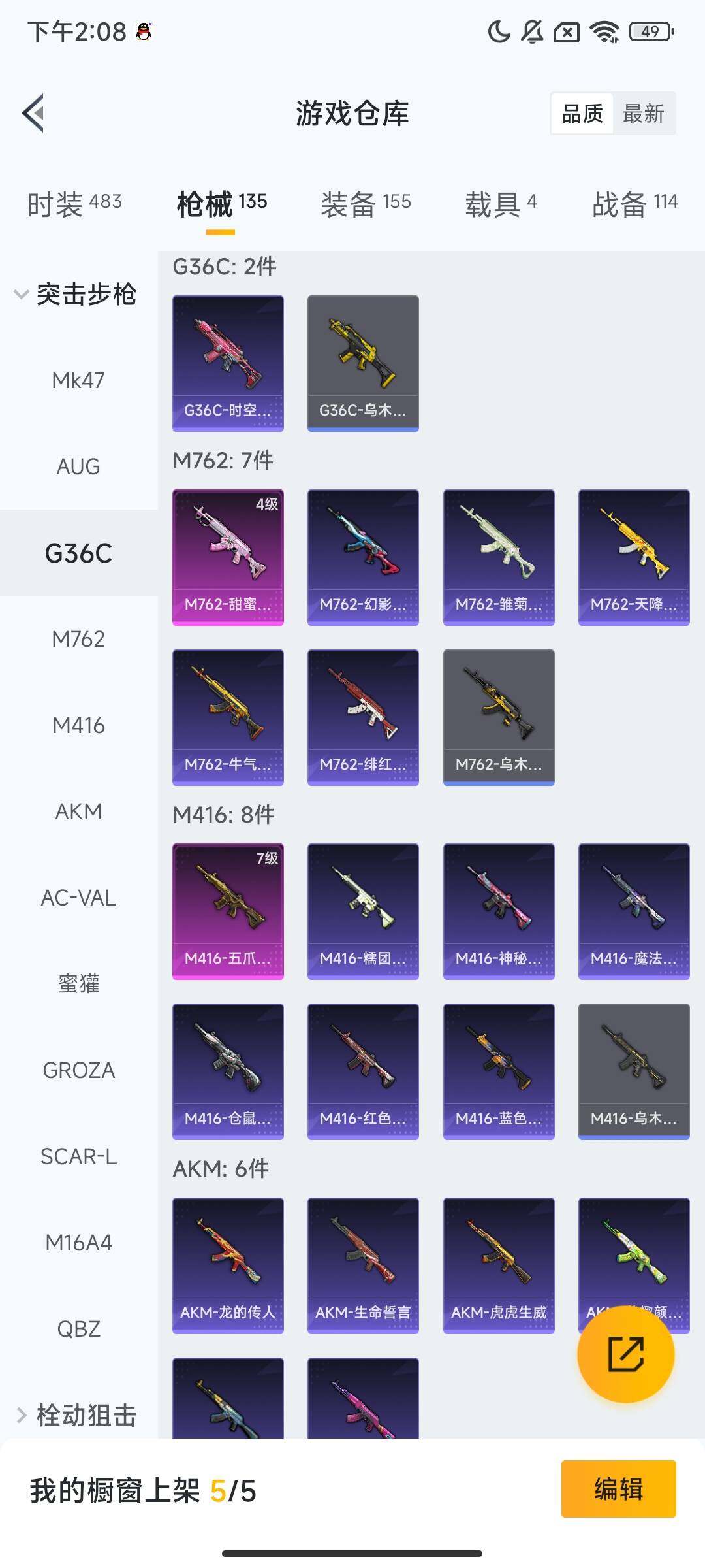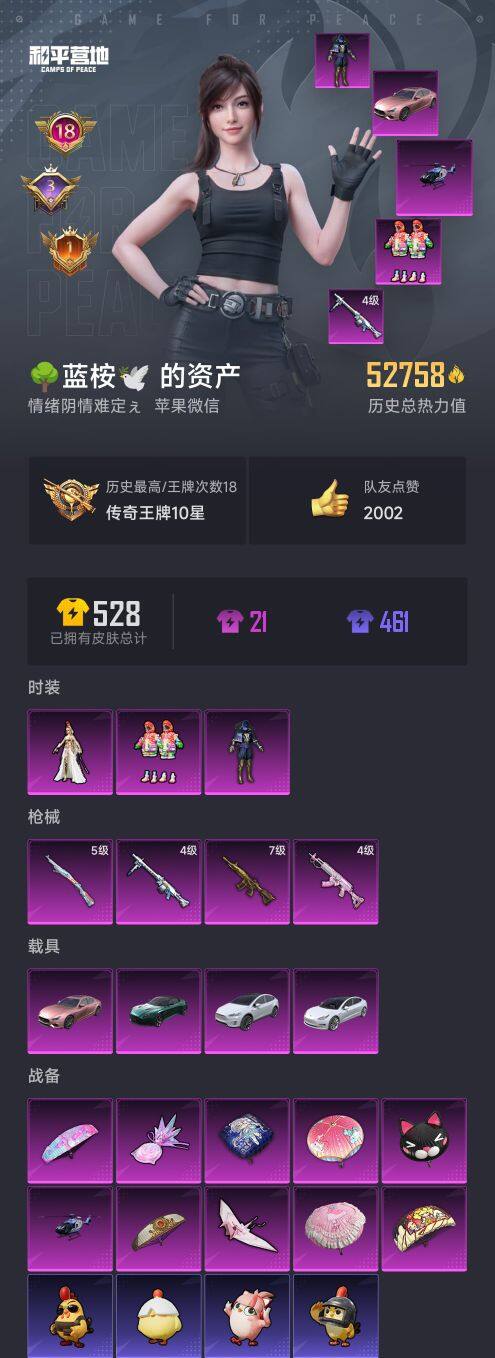 【AZH1559】苹果 微信-3粉装-4特效枪-4载具-2粉色飞行器-52758热力值-18王牌印记-124套装-135枪皮