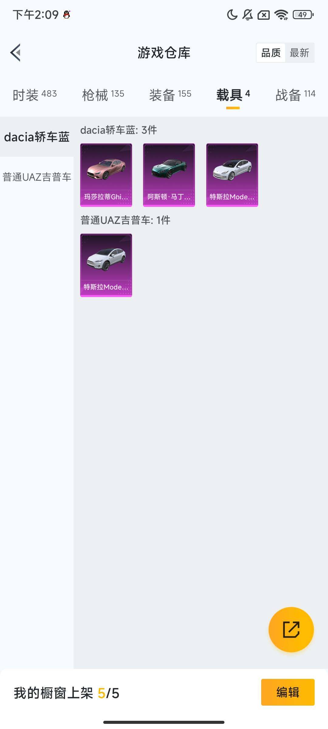 【粉色载具】:特斯拉Model 3(珍珠白),特斯拉Model X(珍珠白),阿斯顿马丁DBS(绿),玛莎拉蒂Ghibli(粉),空客H135-蔚蓝之翼