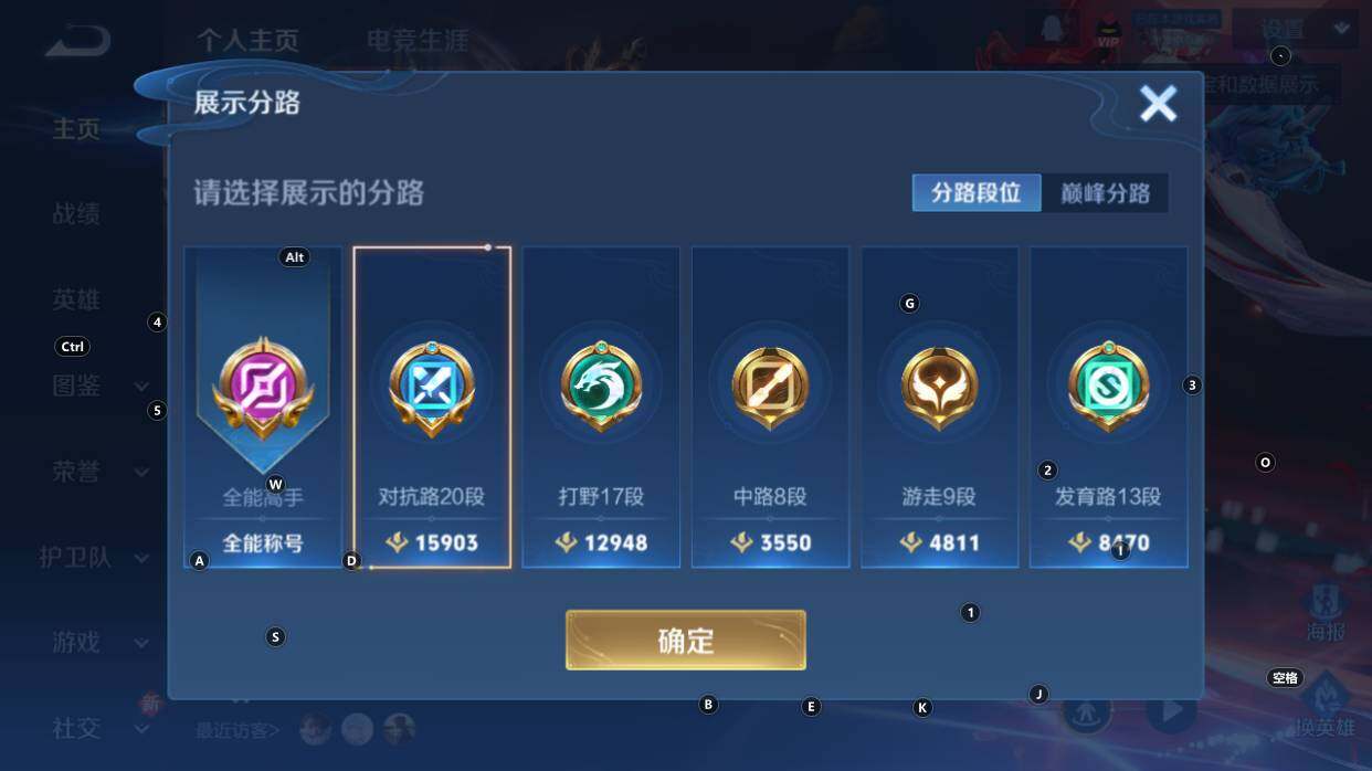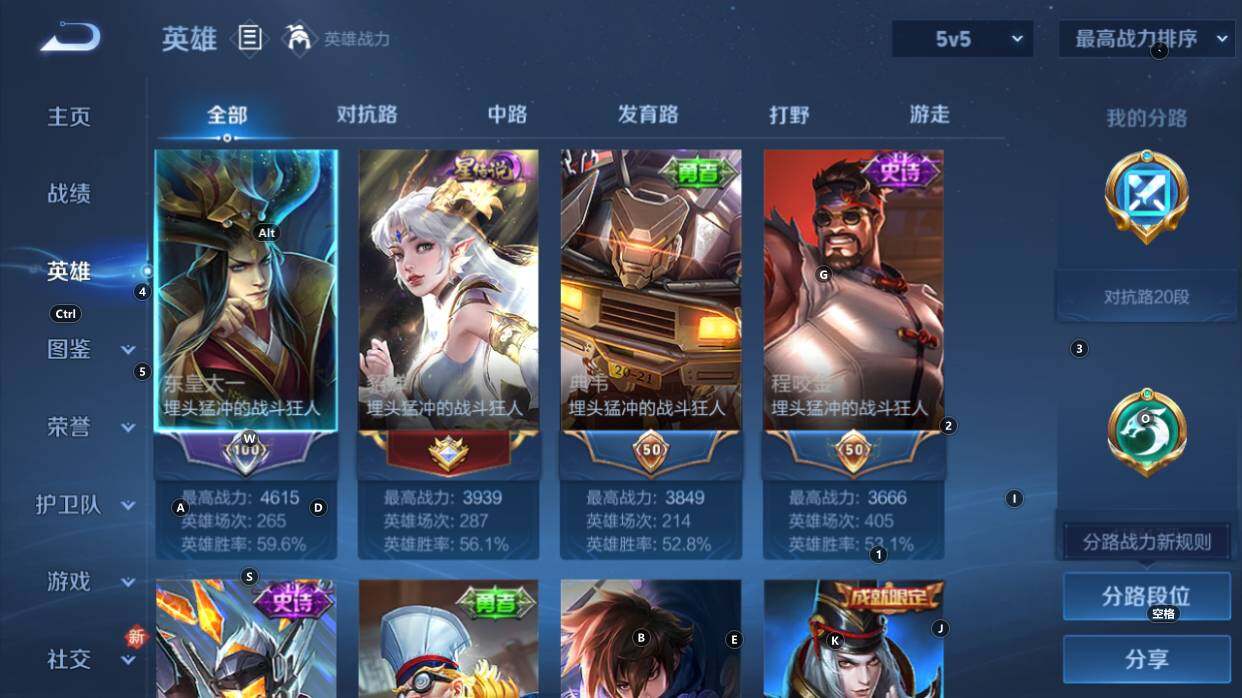 对抗20段,打野17段,1星传说,4按键,星币2980,安卓Q-V4-最强王者