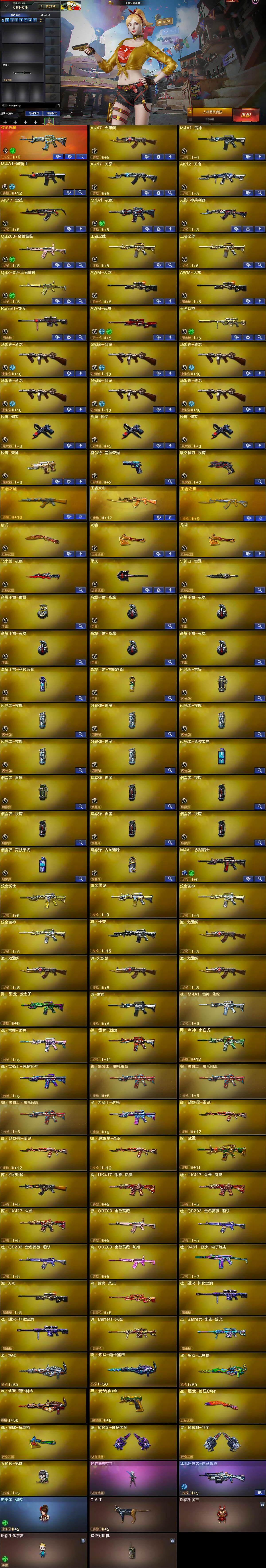 【热门武器】:传说光耀,QBZ03-金色蔷薇,王者炎心,C.A.T,M4A1-黑骑士,汤姆逊-烈龙*6,斯泰尔-蝴蝶,火麒麟-绝迹,沙鹰-修罗*3