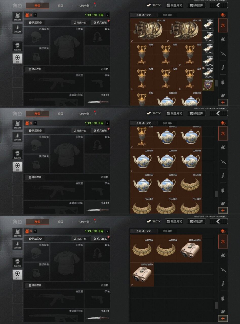 xr59暗区 突击匕首 仓库价值57M 科恩币3807K 机密文件 开山刀 2