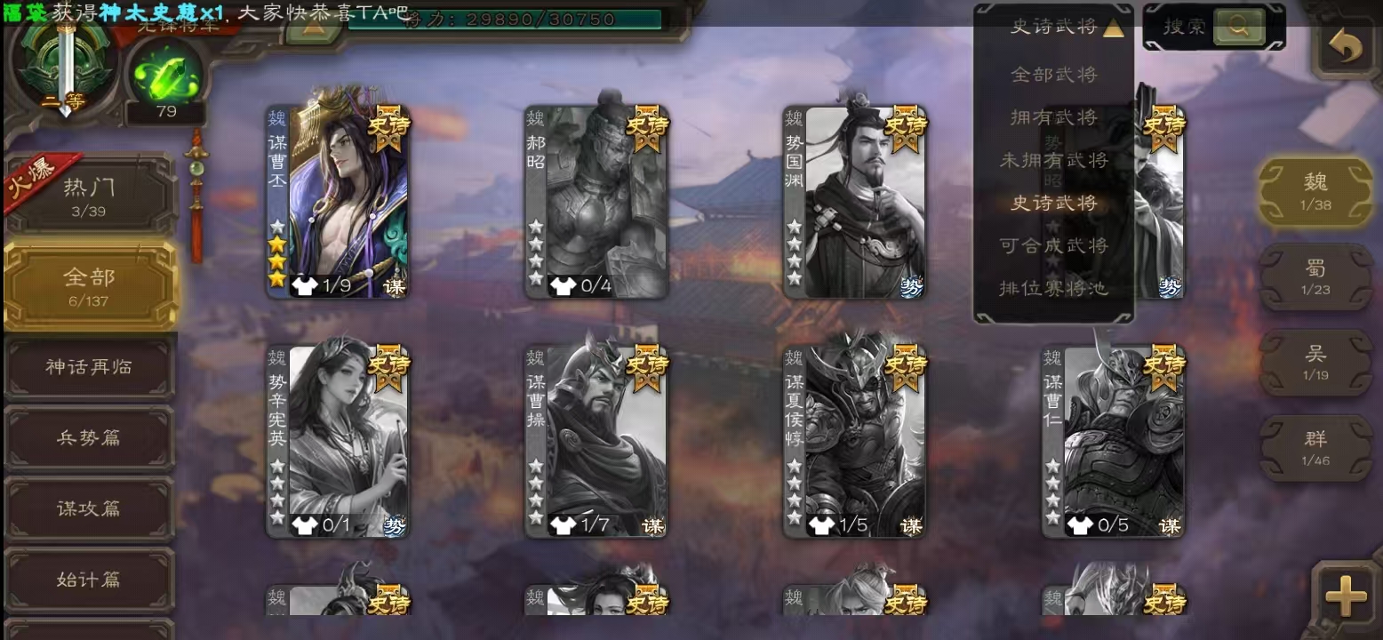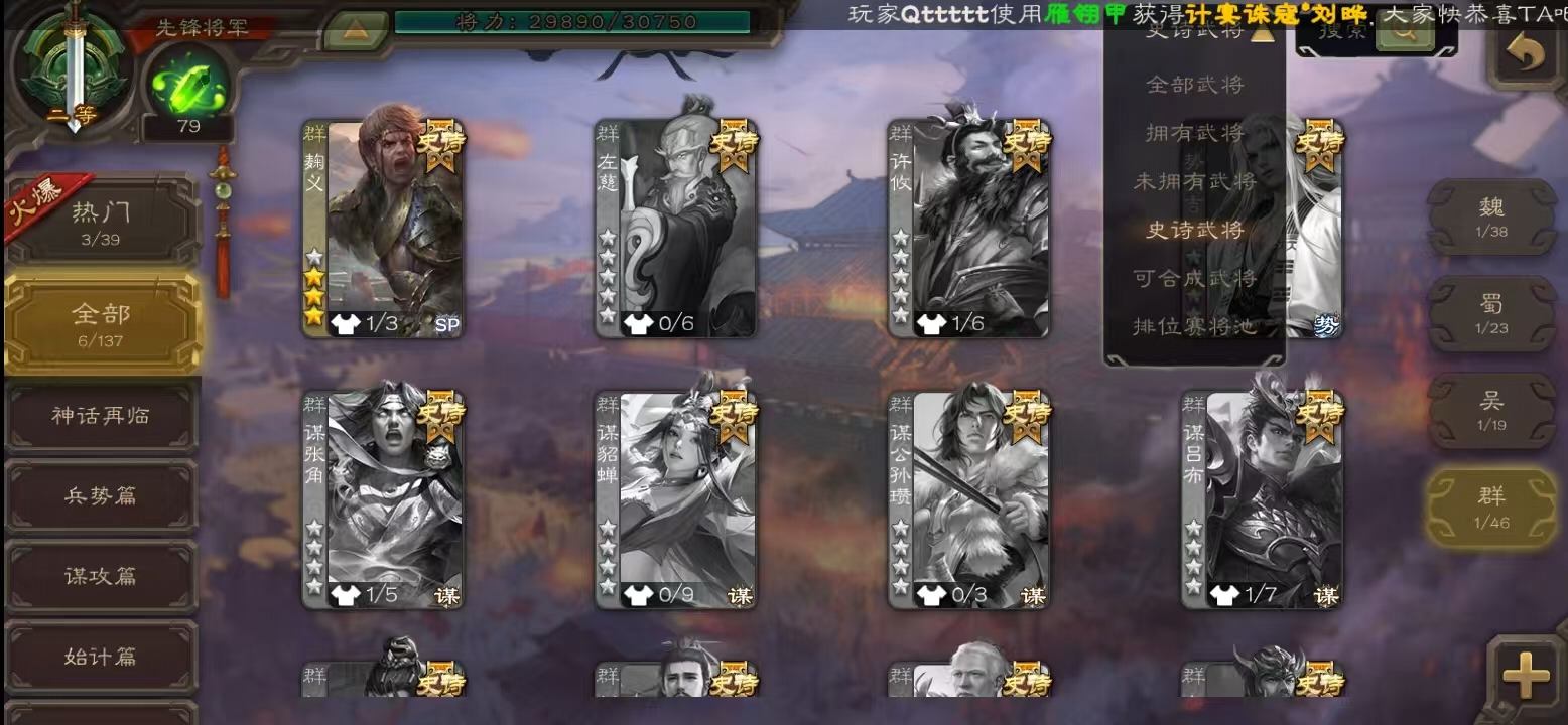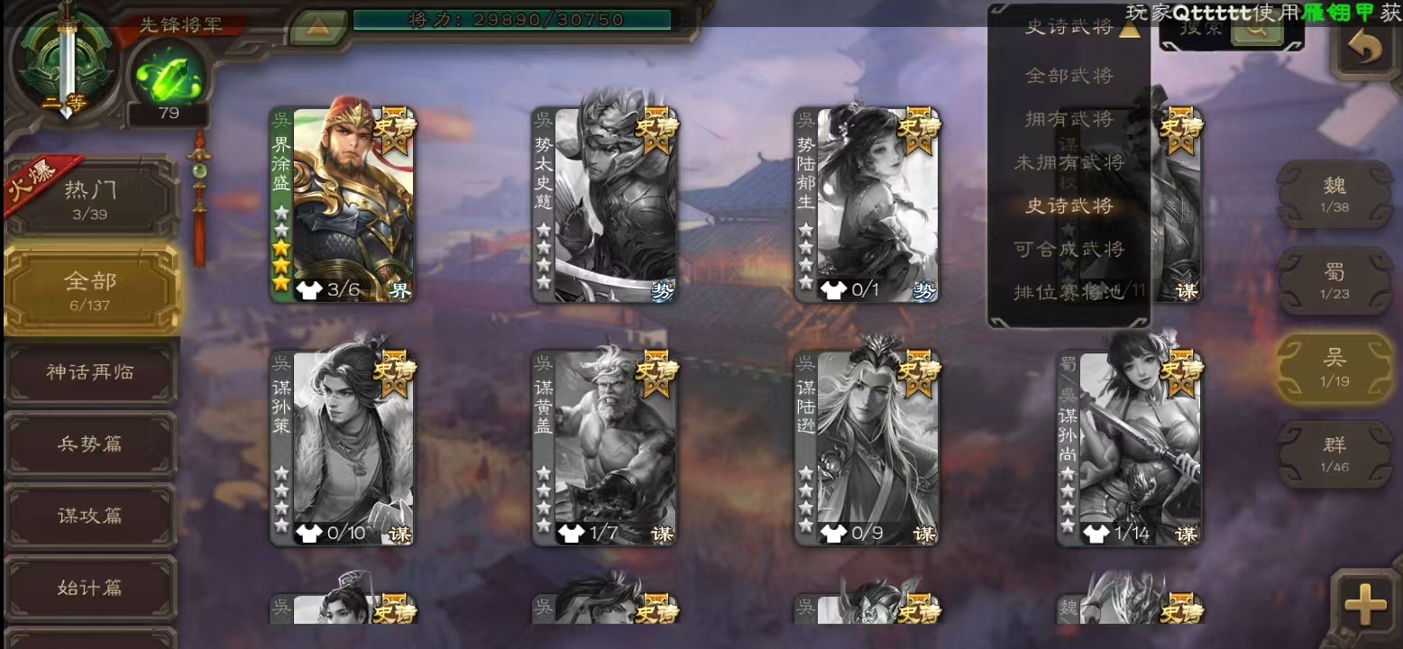 史诗武将数量: