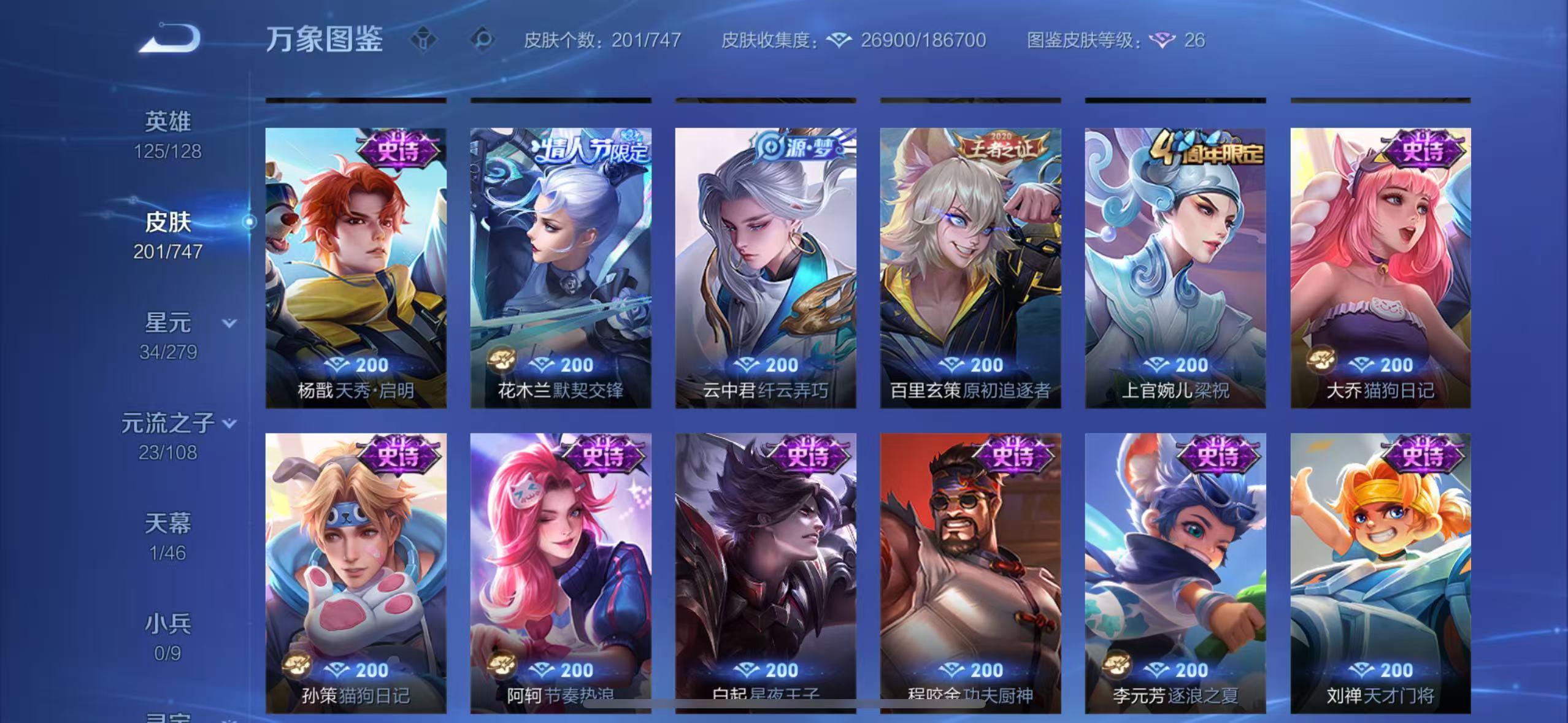 苹果QQ-1典藏-2传说-201皮肤-125英雄-无双王者-QQ区苹果 安卓区也有皮肤 不想玩了,急出