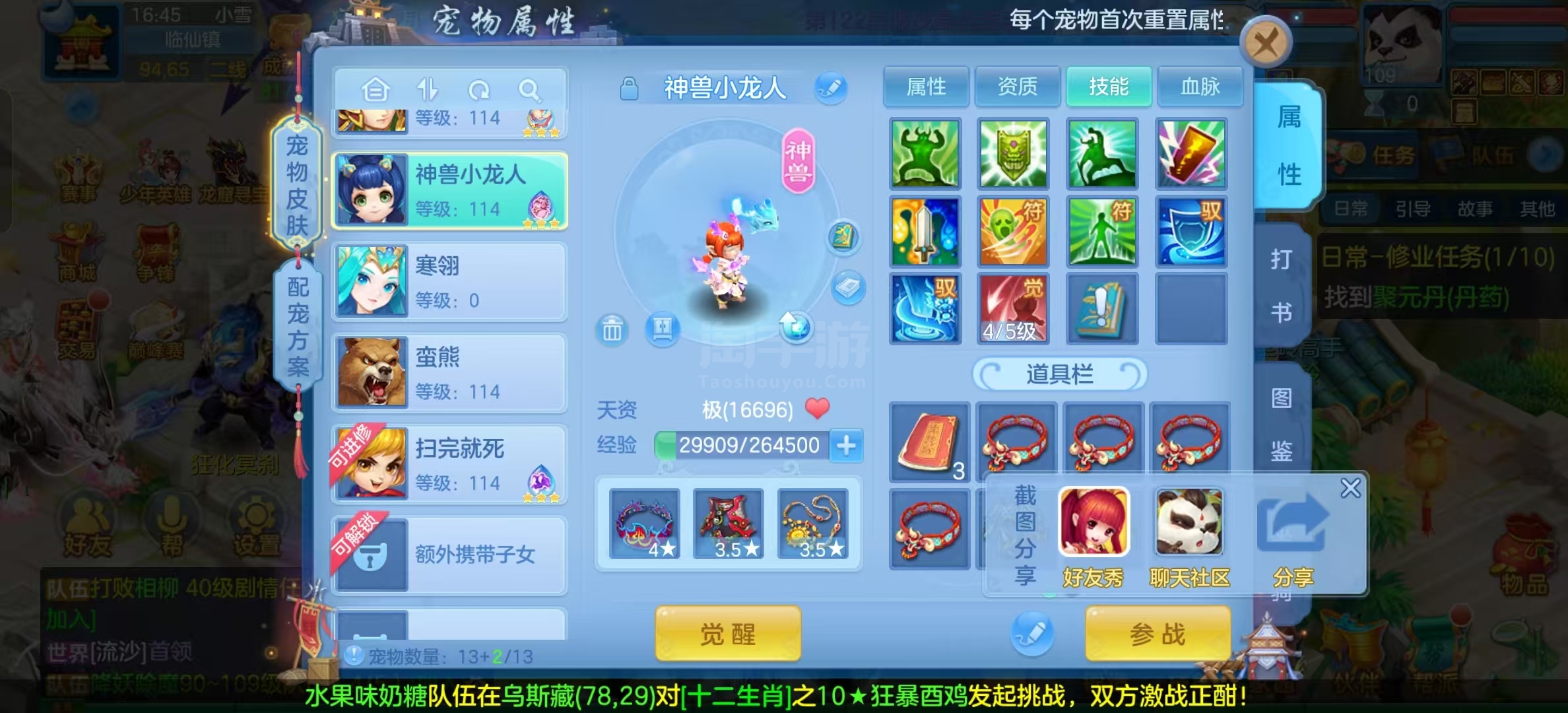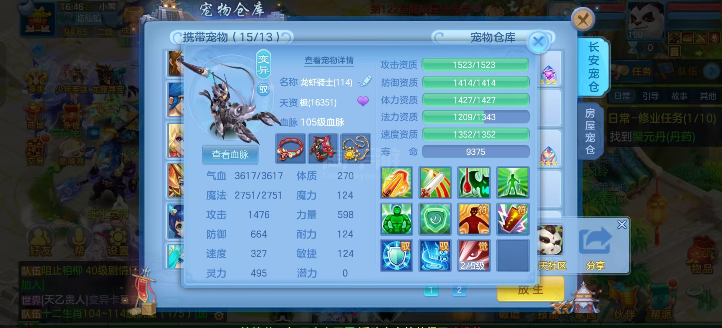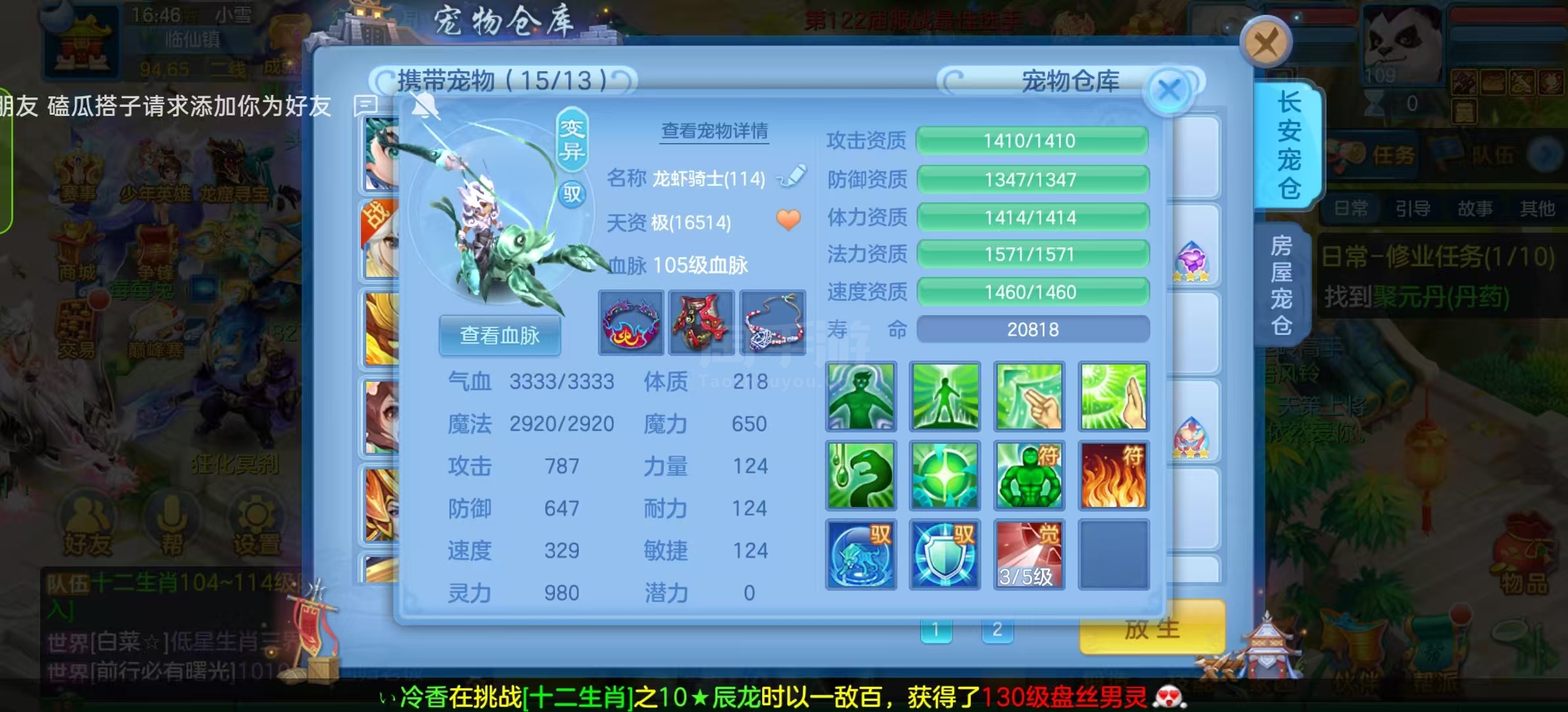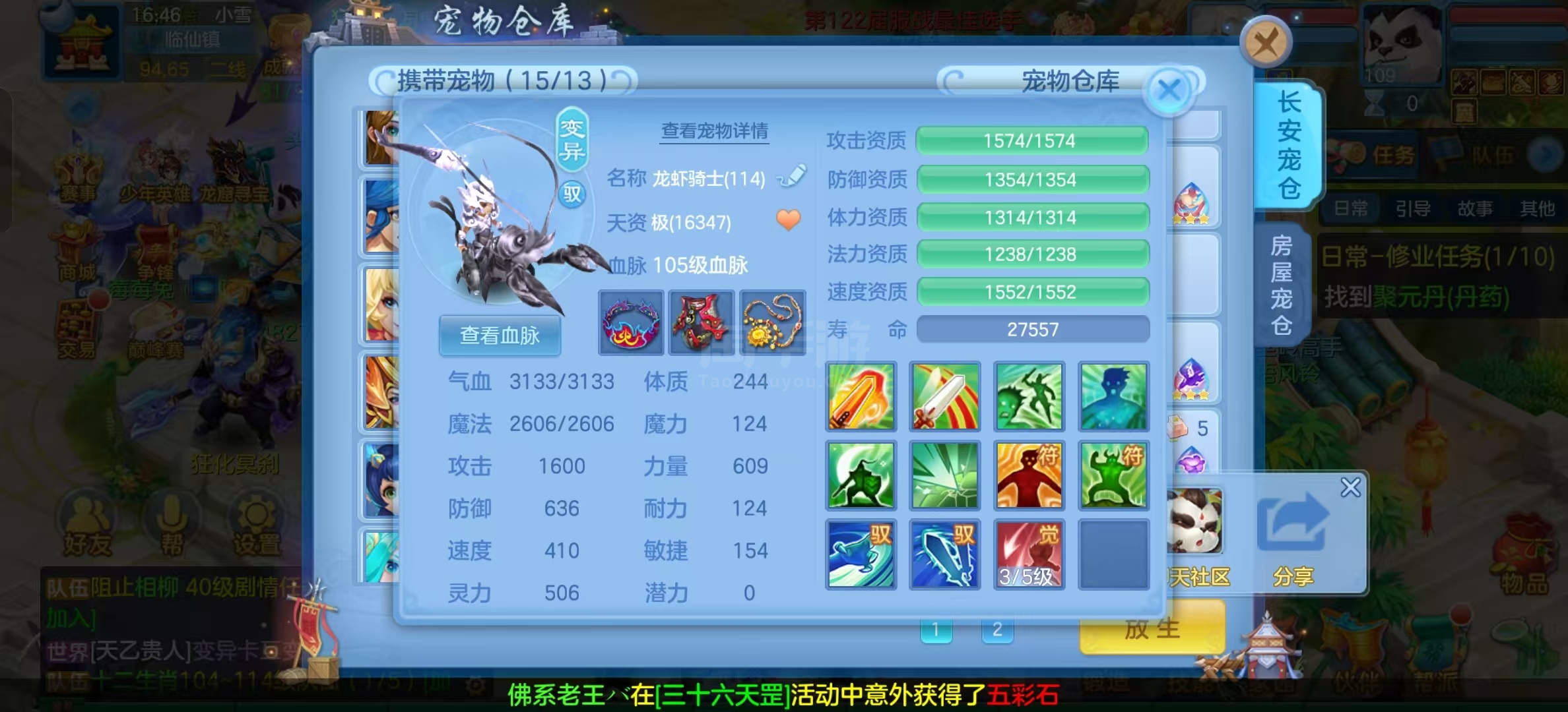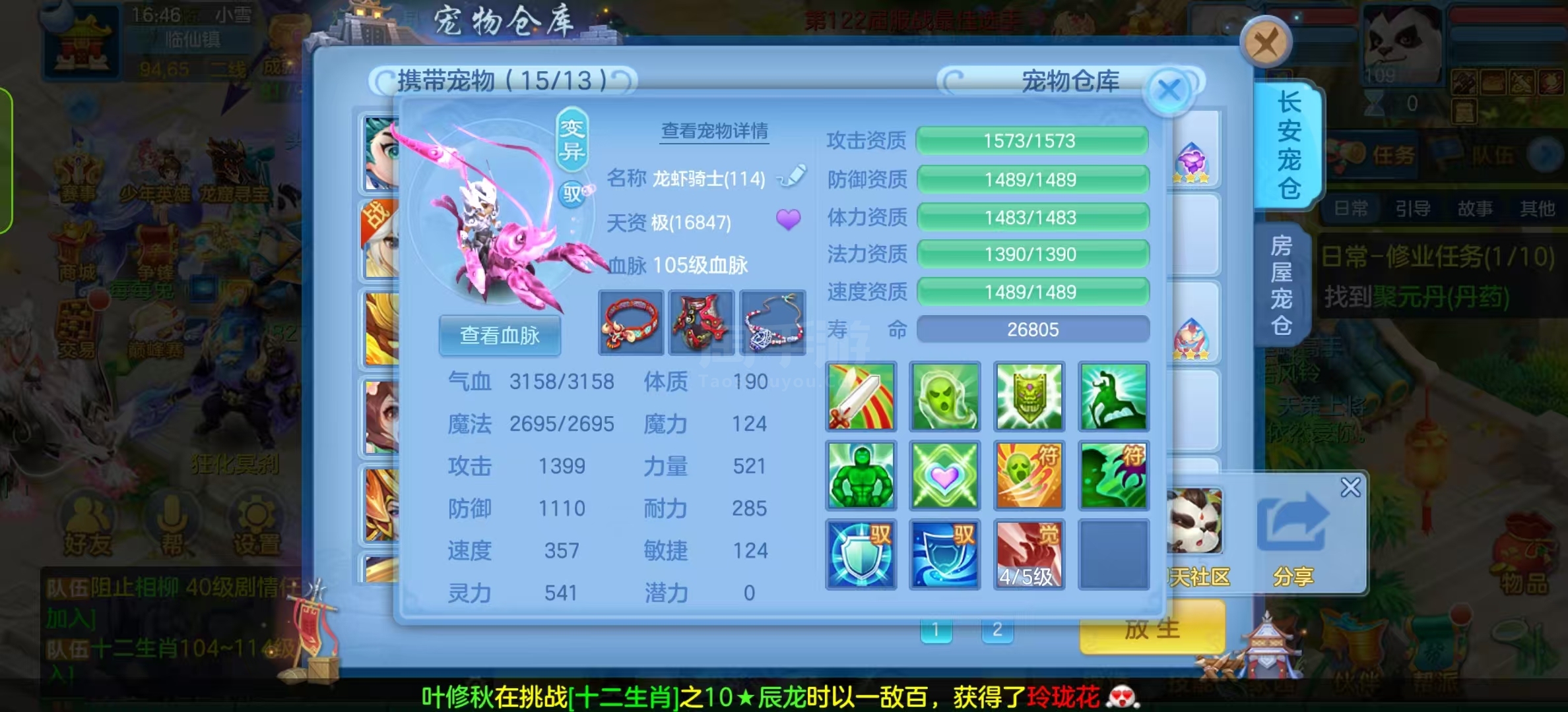 109盘丝(1年换绑)无双重-全身13,六特高级坐骑,内胆神特殊多多