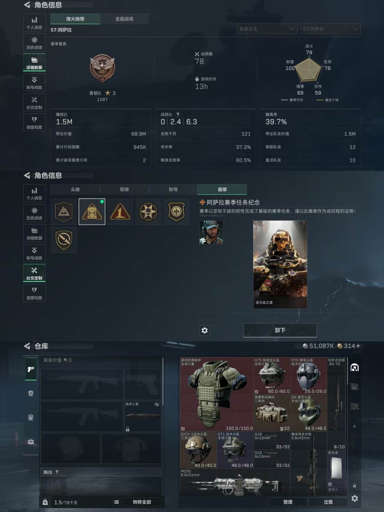 MSJ2601【中额资产103M+蚀金玫瑰捆绑包+4金枪】三端互通-总价值103.7M-哈夫币51087k-烽火地带等级47-烽火地带段位青铜【干员皮肤】红狼-蚀金玫瑰【近战武器】黑鹰【枪皮】M4A1突击步枪-高雅黑 M4A1突击步枪-蚀金玫瑰 QBZ95-1突击步枪-高雅黑 QBZ95-1突击步枪-海色 K416突击步枪-碳纤维 M16A4突击步枪-山林猎人 AUG突击步枪-浅蓝涂装 M7战斗步枪-捣蛋鬼 SG552突击步枪-海浪 AK-12突击步枪-零点 SCAR-H战斗步枪-红色涂装 SC