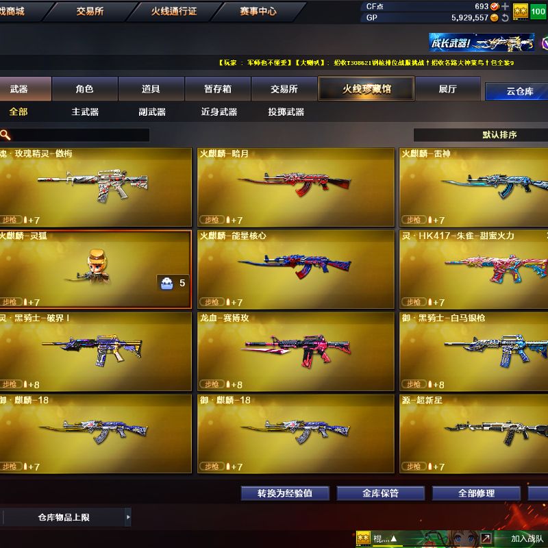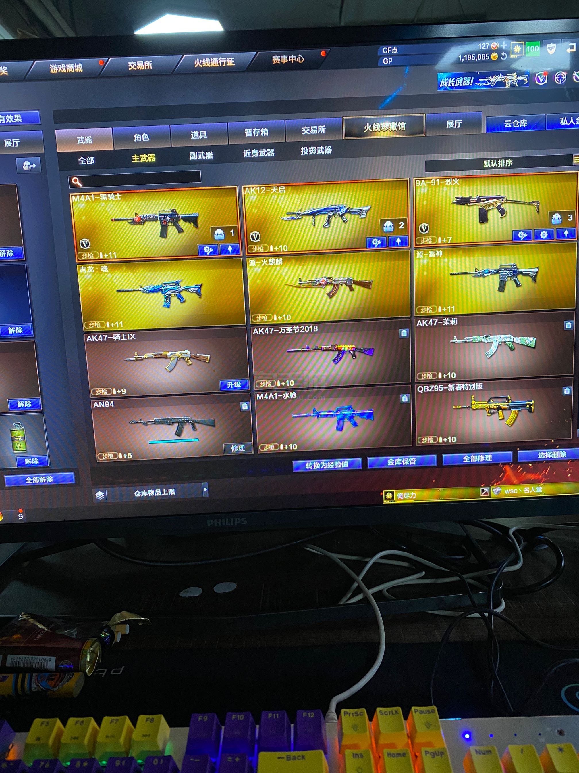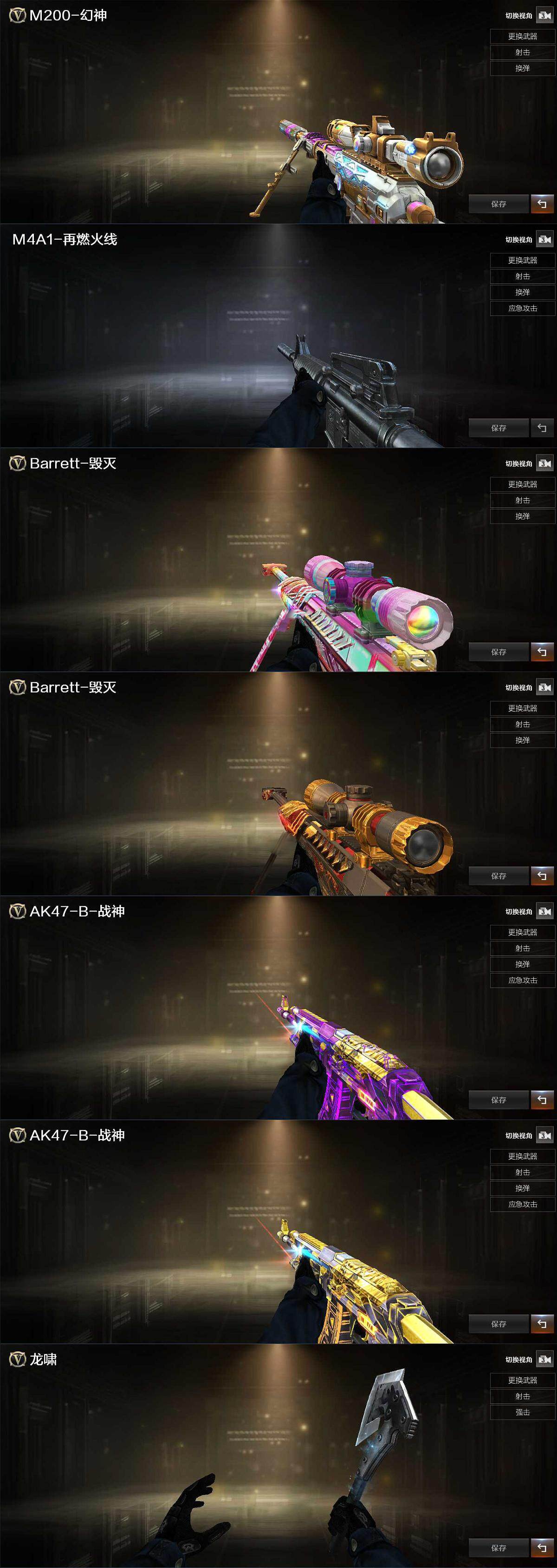 【热门武器】:QBZ03-金色蔷薇,M4A1-黑骑士,RPK-盘龙*4,加特林-炼狱,雷神-小红