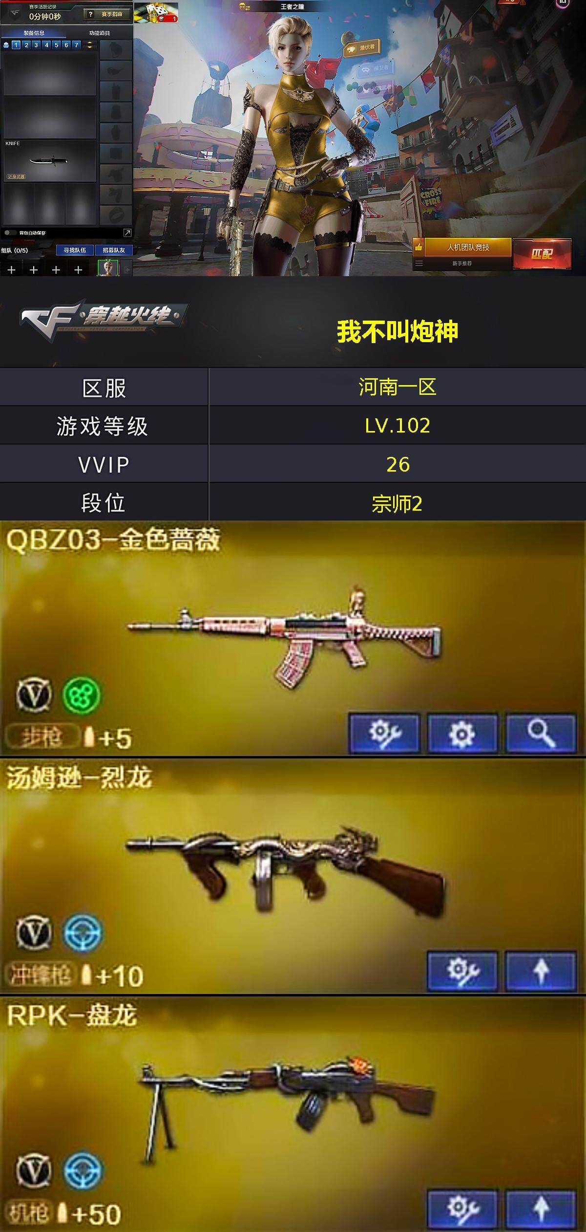 河南一区-25V-2王者-1炫金【热门武器】:QBZ03-金色蔷薇,M4A1
