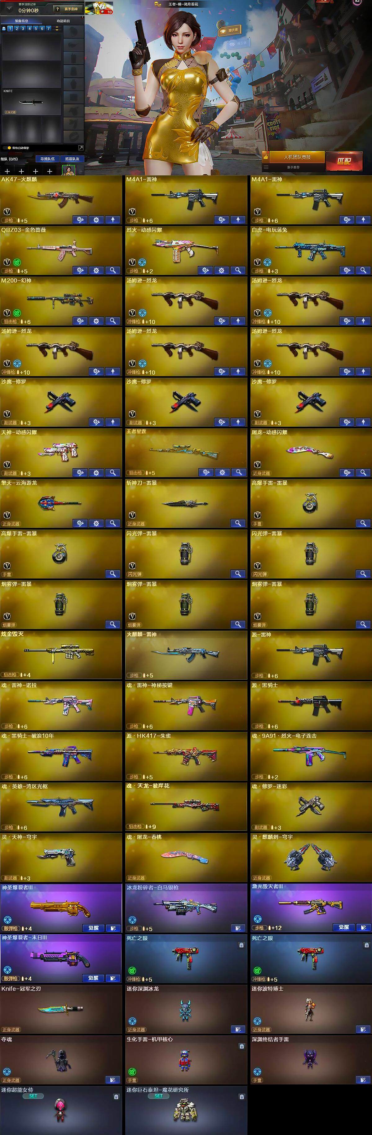 【热门武器】:QBZ03-金色蔷薇,M200-幻神,死亡之眼*2,白虎-电玩蓝兔,汤姆逊-烈龙*5,沙鹰-修罗*3,Knife-冠军之刃*2