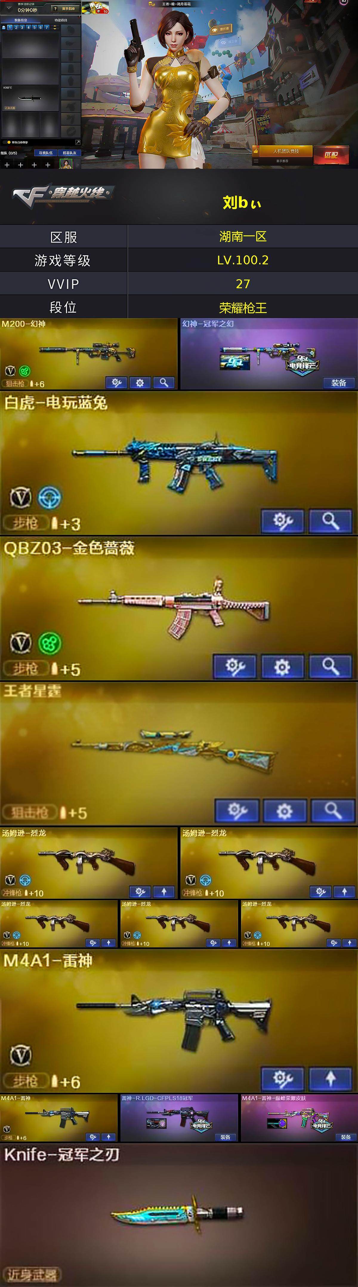 湖南一区-27V-2王者-1炫金【热门武器】:QBZ03-金色蔷薇,M200