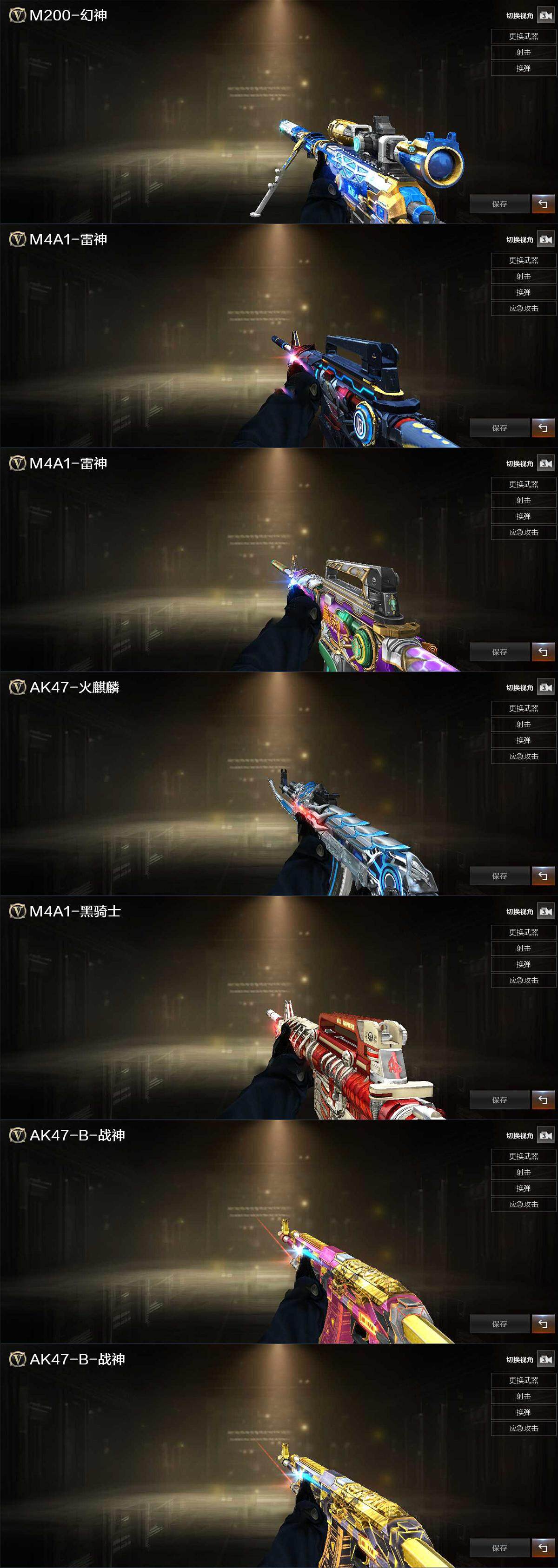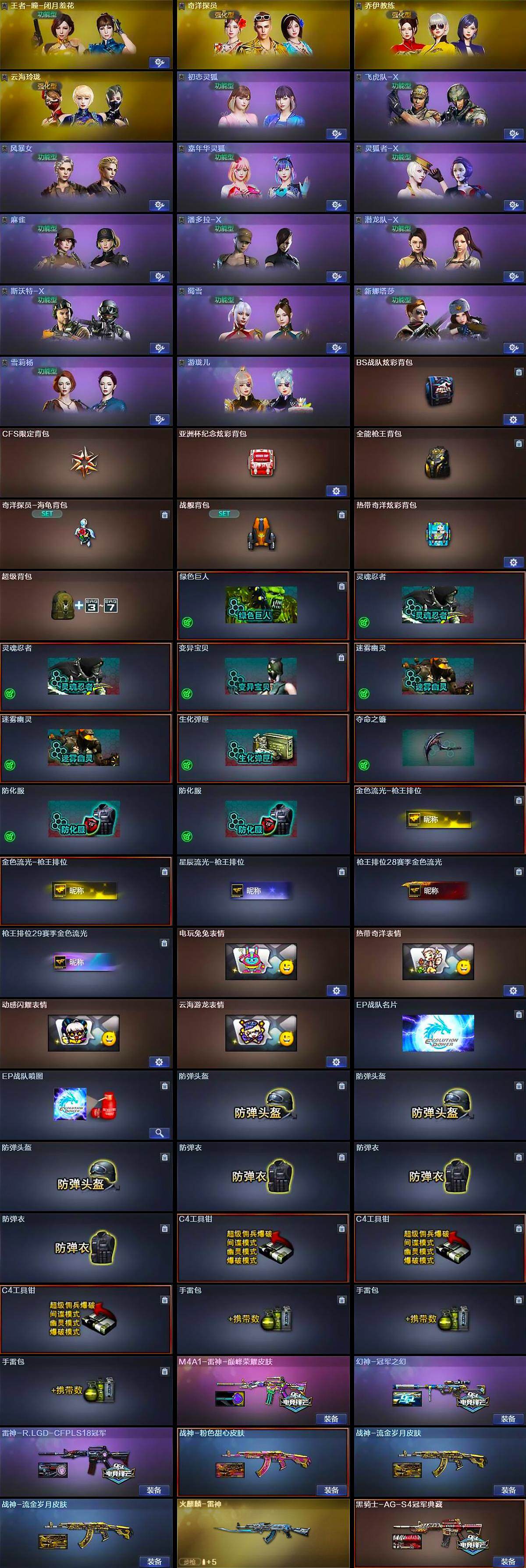 【皮肤】:幻神-冠军之幻,雷神-R.LGD-CFPLS18冠军,M4A1-雷神-巅峰荣耀皮肤,火麒麟-雷神,黑骑士-AG-S4冠军典藏,战神-粉色甜心皮肤,战神-流金岁月皮肤*2,AK