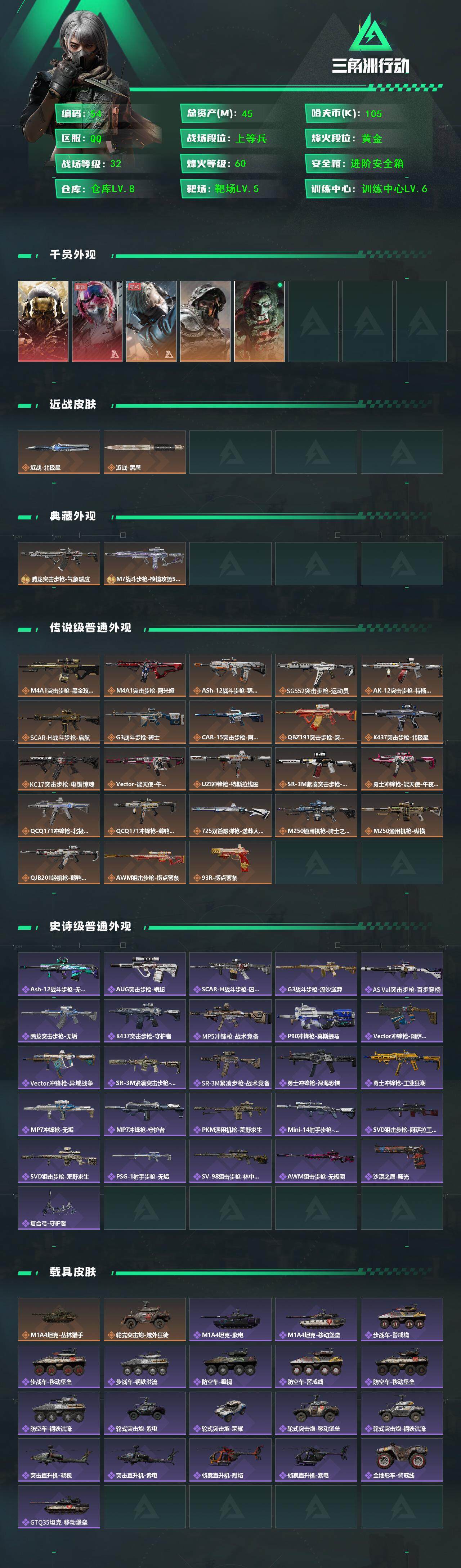 【传说外观】:M4A1突击步枪-蚀金玫瑰,M4A1突击步枪-阿米娅,ASh-12战斗步枪-鹅鸭杀,