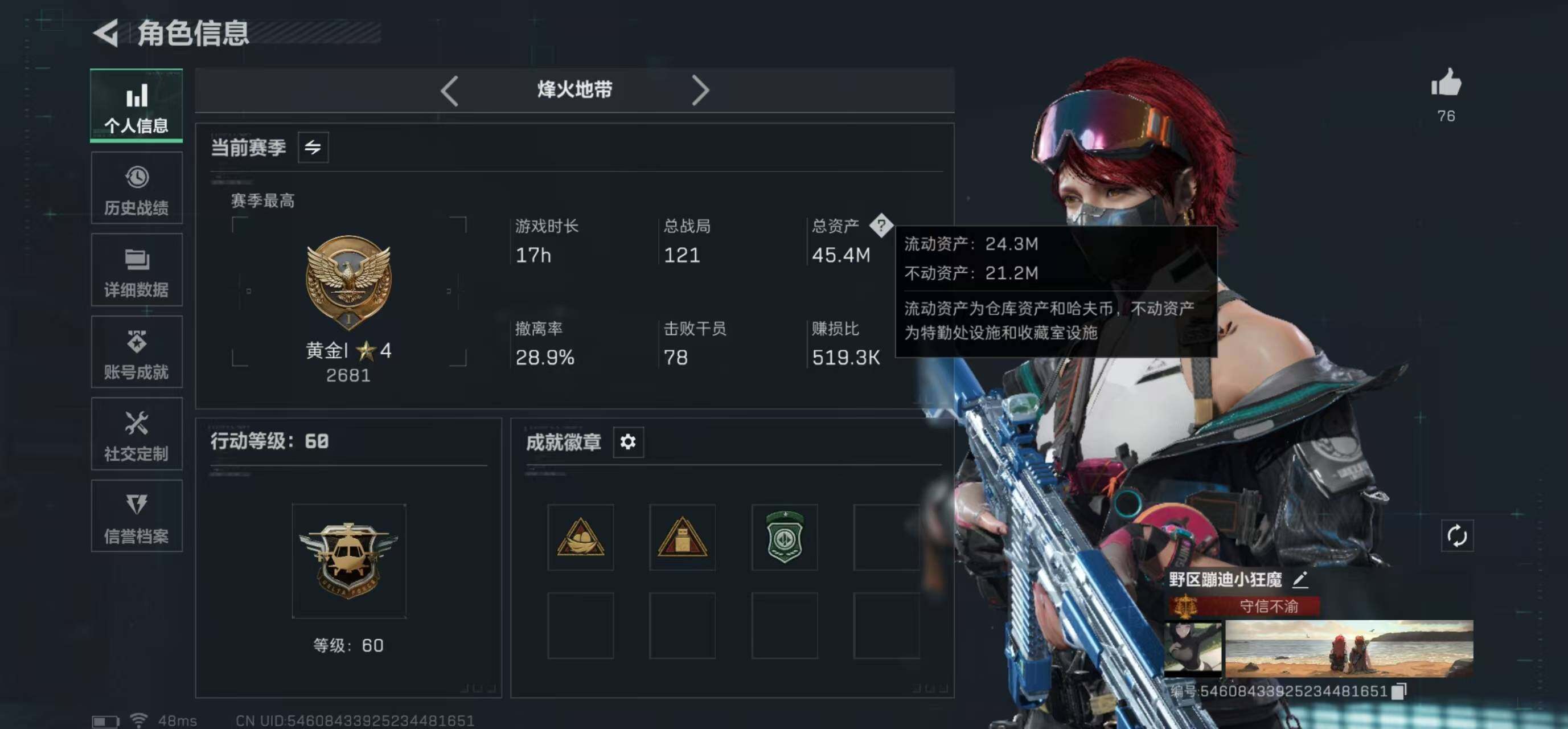 105k哈伏币-24m流动资产-60烽火等级-黄金-32战场等级-上等兵 SS3183