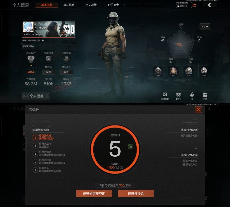 cl113双刀资源号 突击匕首 霜狼生存刀 仓库价值68M 科恩币4805万