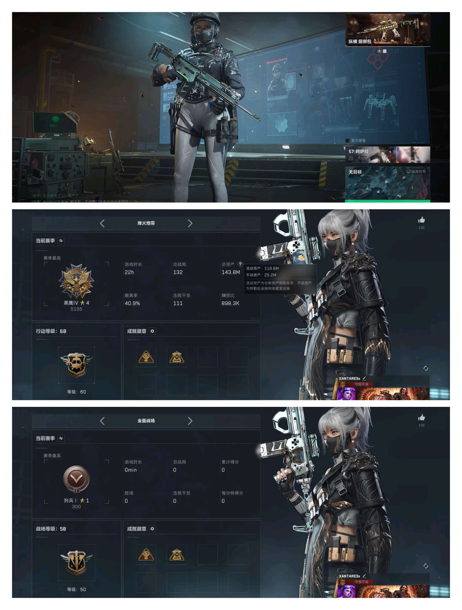 D10764/QQ区/可二次/钱包注销/总资产:143.8M,哈夫币:72W,武器皮肤317;烽火6