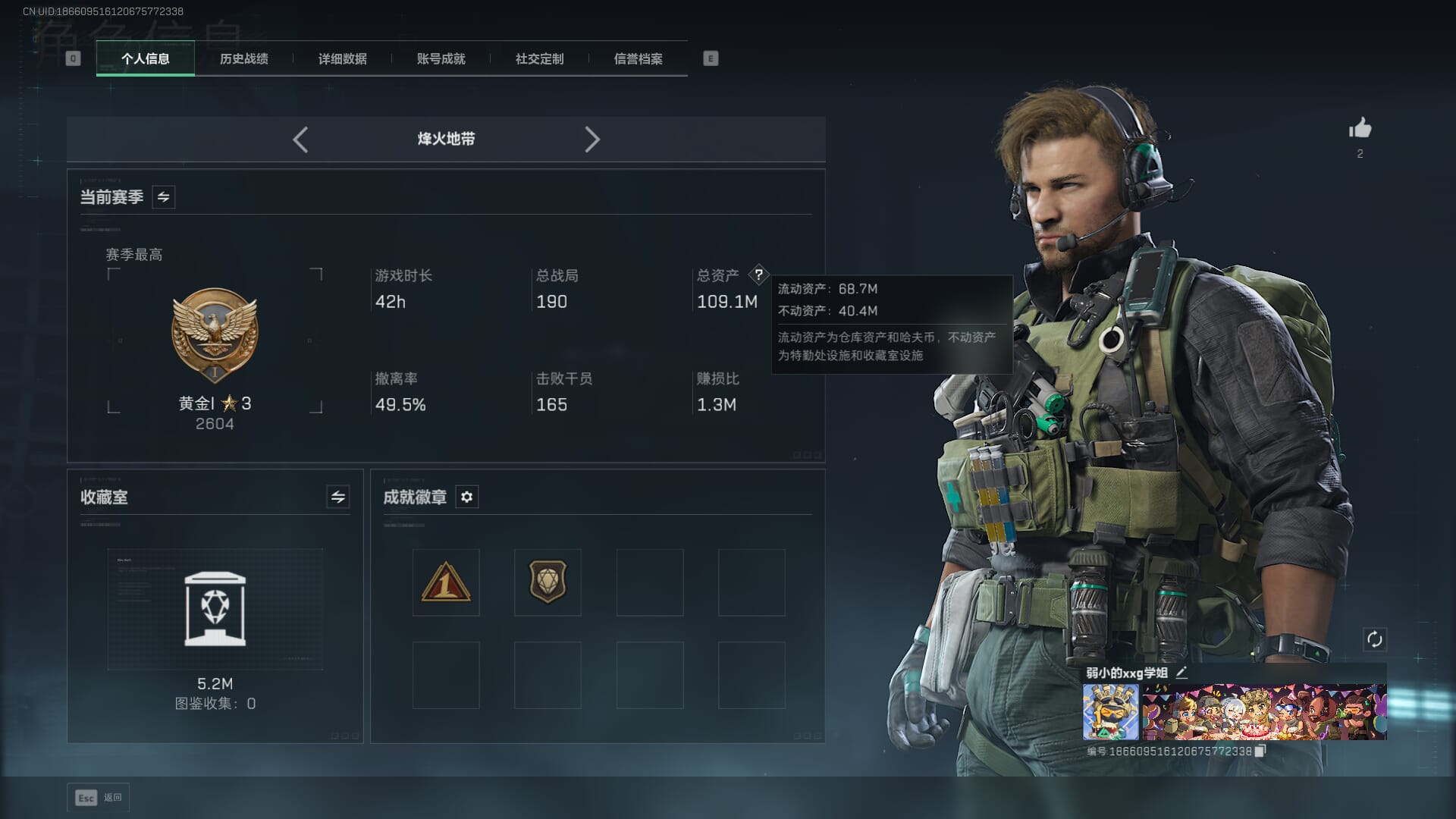 D10761/QQ区/可二次/钱包注销/总资产:109.1M,哈夫币:4674W,武器皮肤50;烽火