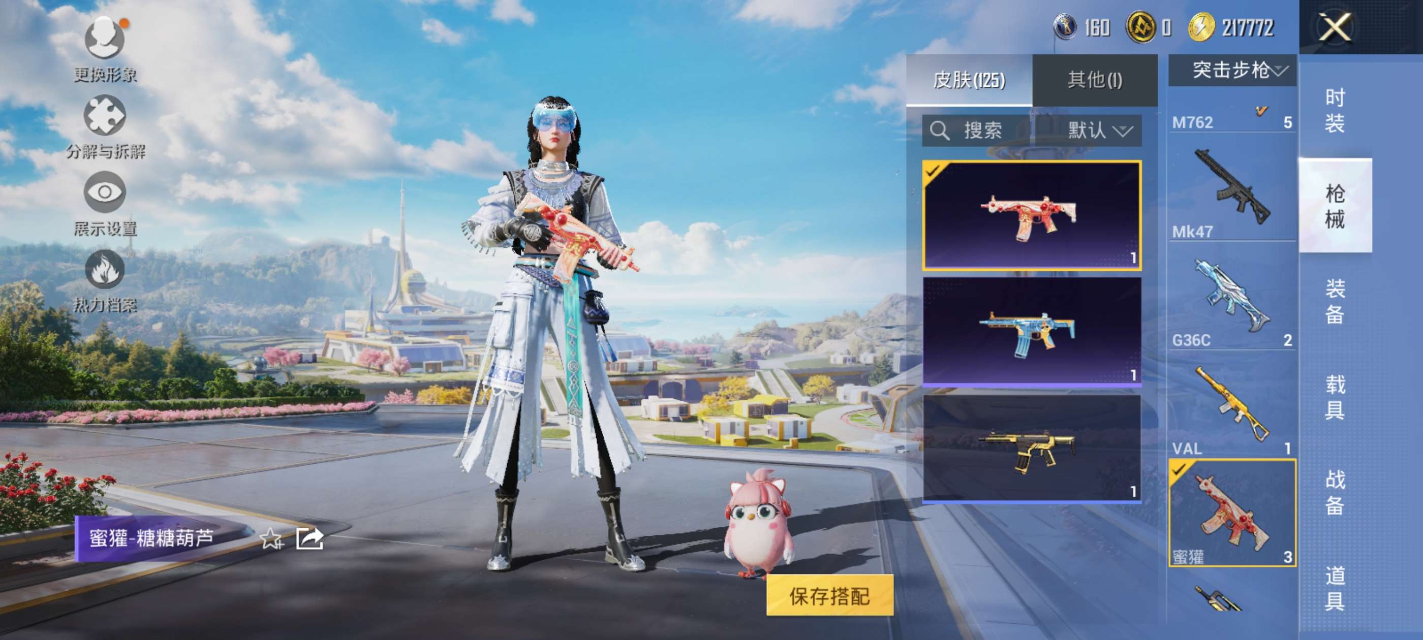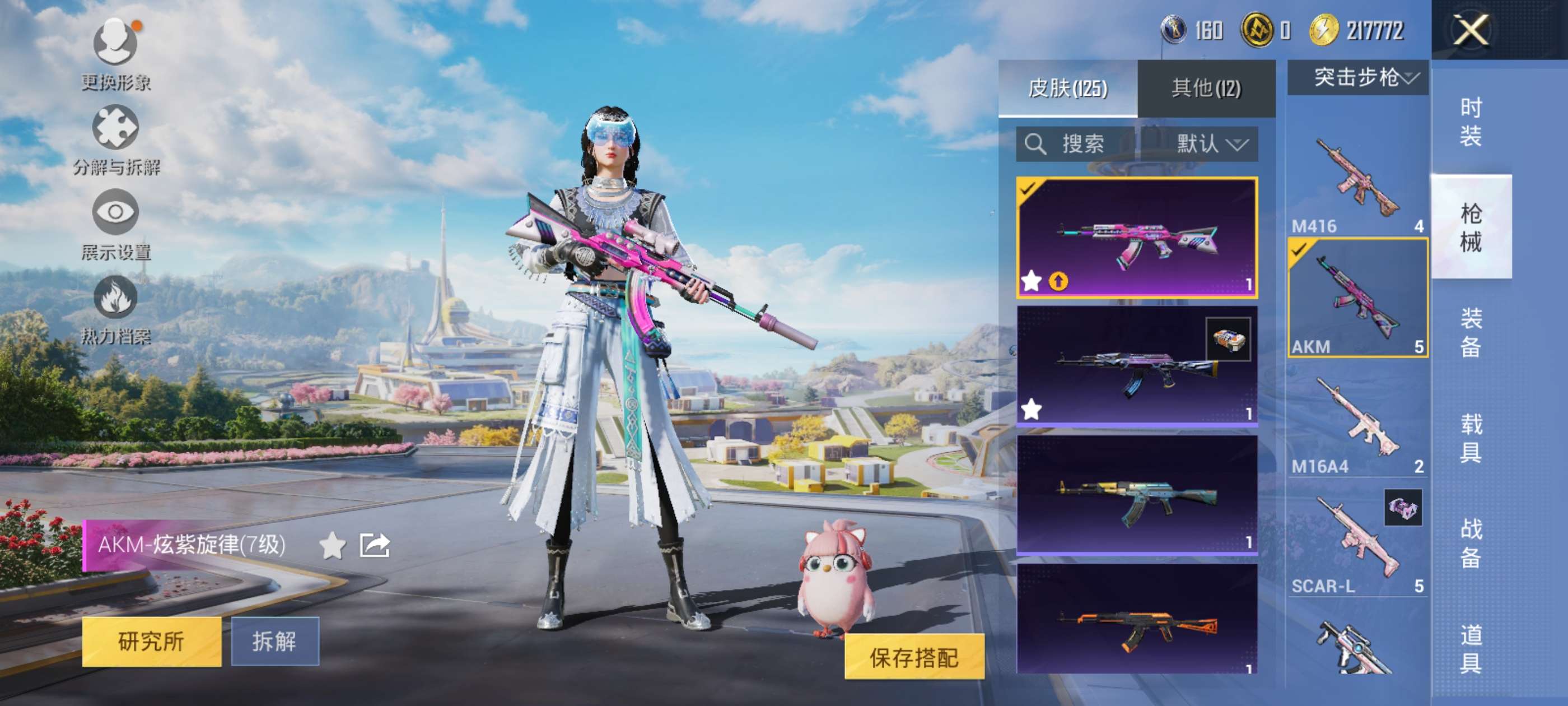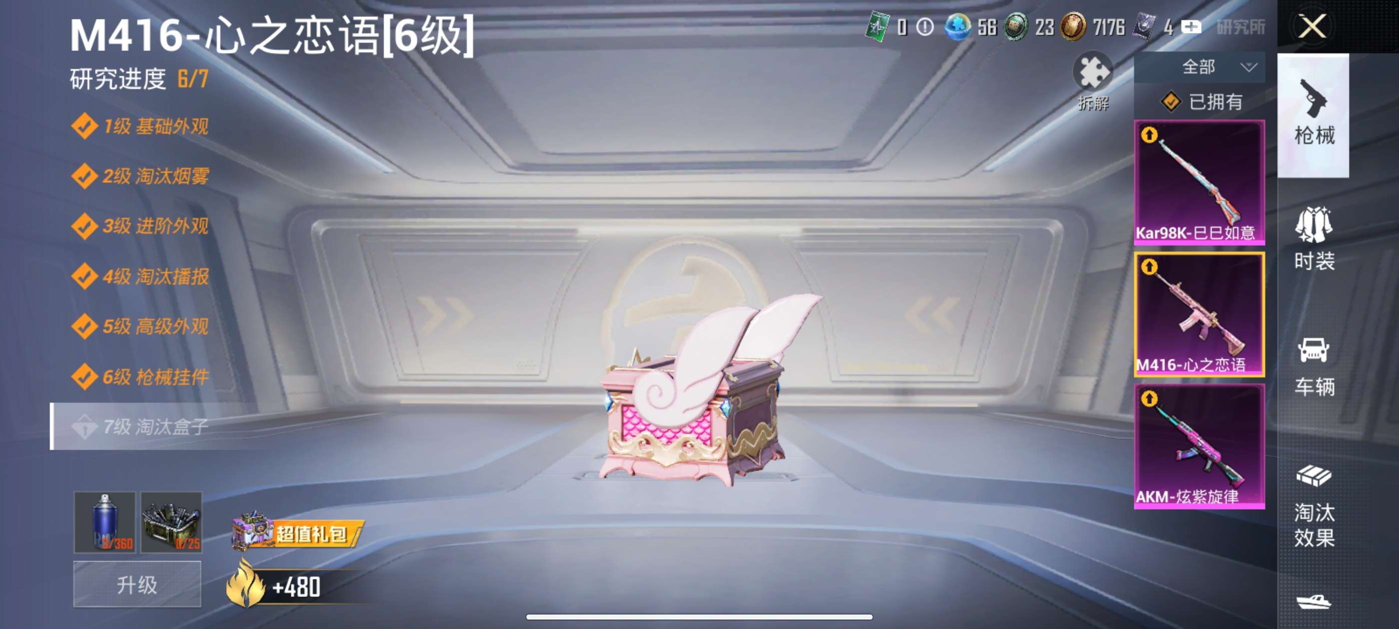 满级炫紫旋律 六级心之恋语 两件粉装 枪械基本都有皮肤 低价出可二次