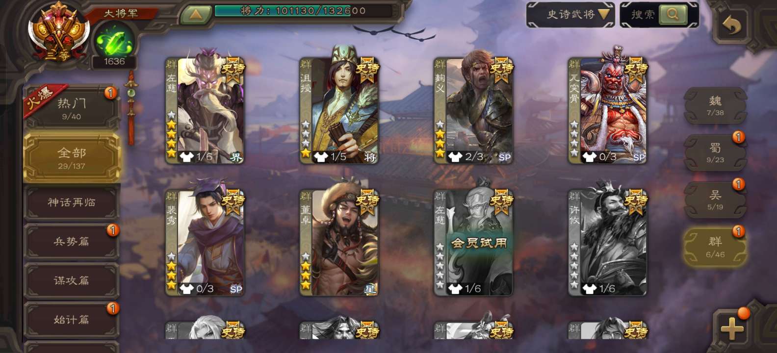 史诗武将数量: