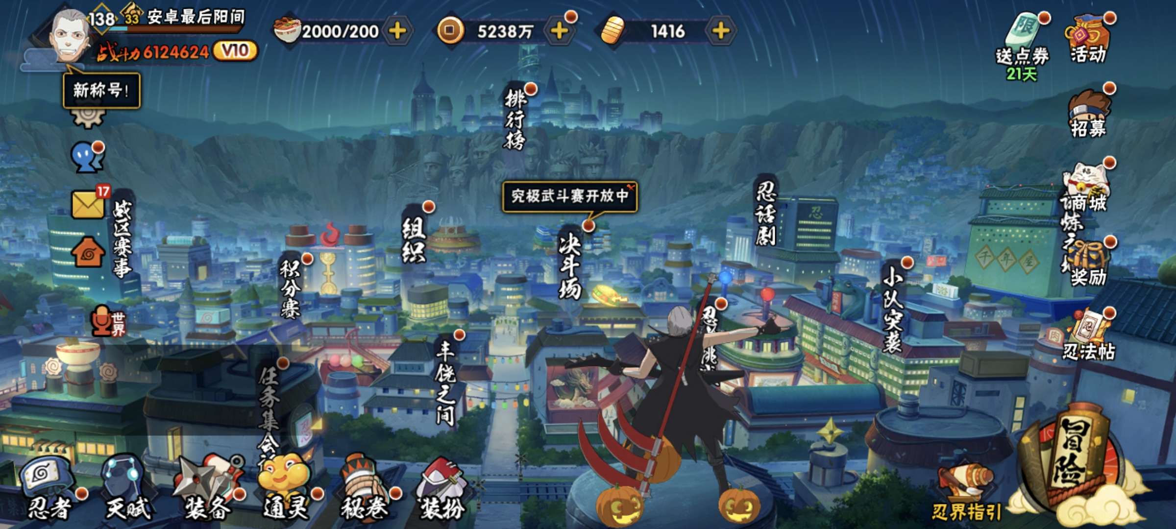 可二次,九尾鸣人,须佐佐助,卡卡西,解班,还有好多点卷忍者,有熊猫