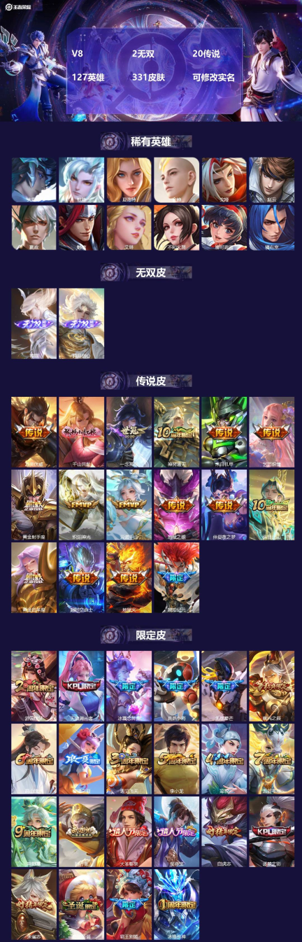 V8 2无双 20传说 127英雄 331皮肤 可修改实名