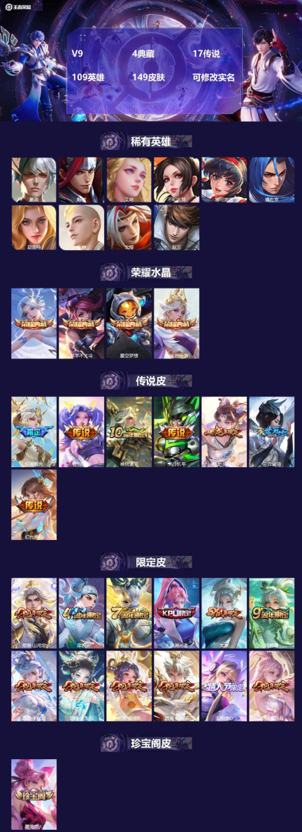 V9 4典藏 17传说 109英雄 149皮肤 可修改实名