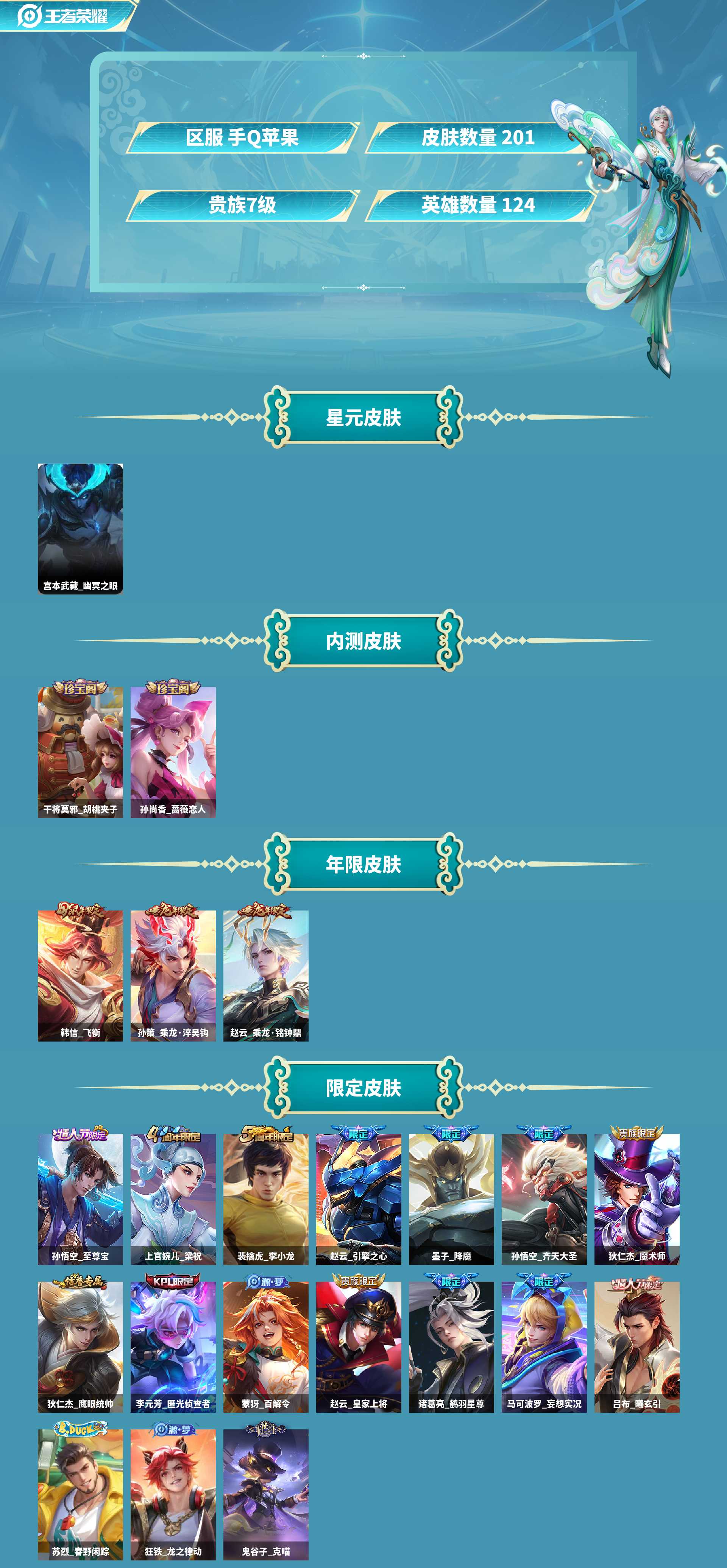 极品账号200皮肤,11传说皮肤数200皮肤价值130092