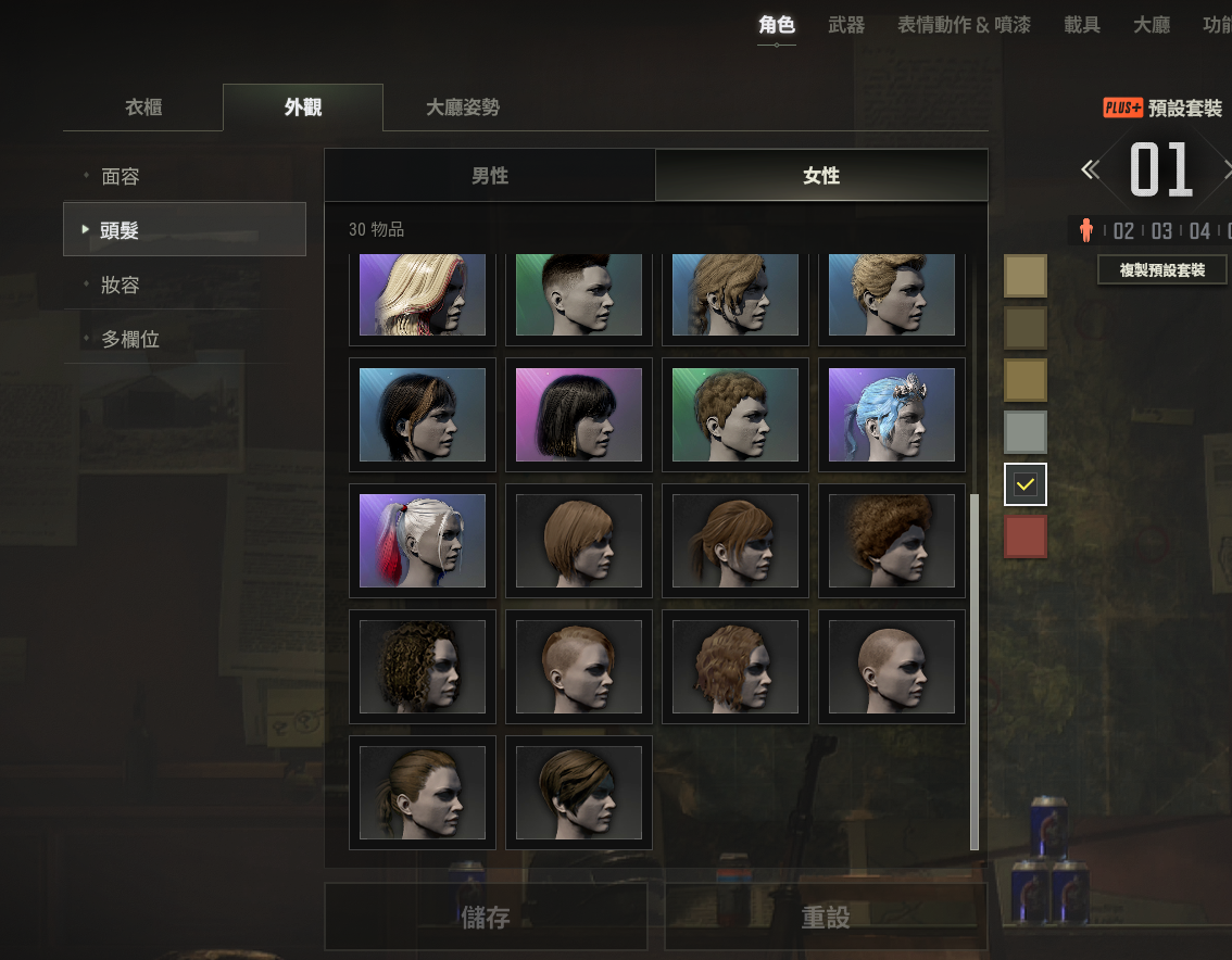 衣服蛮多,枪皮蛮多,双马尾金面罩