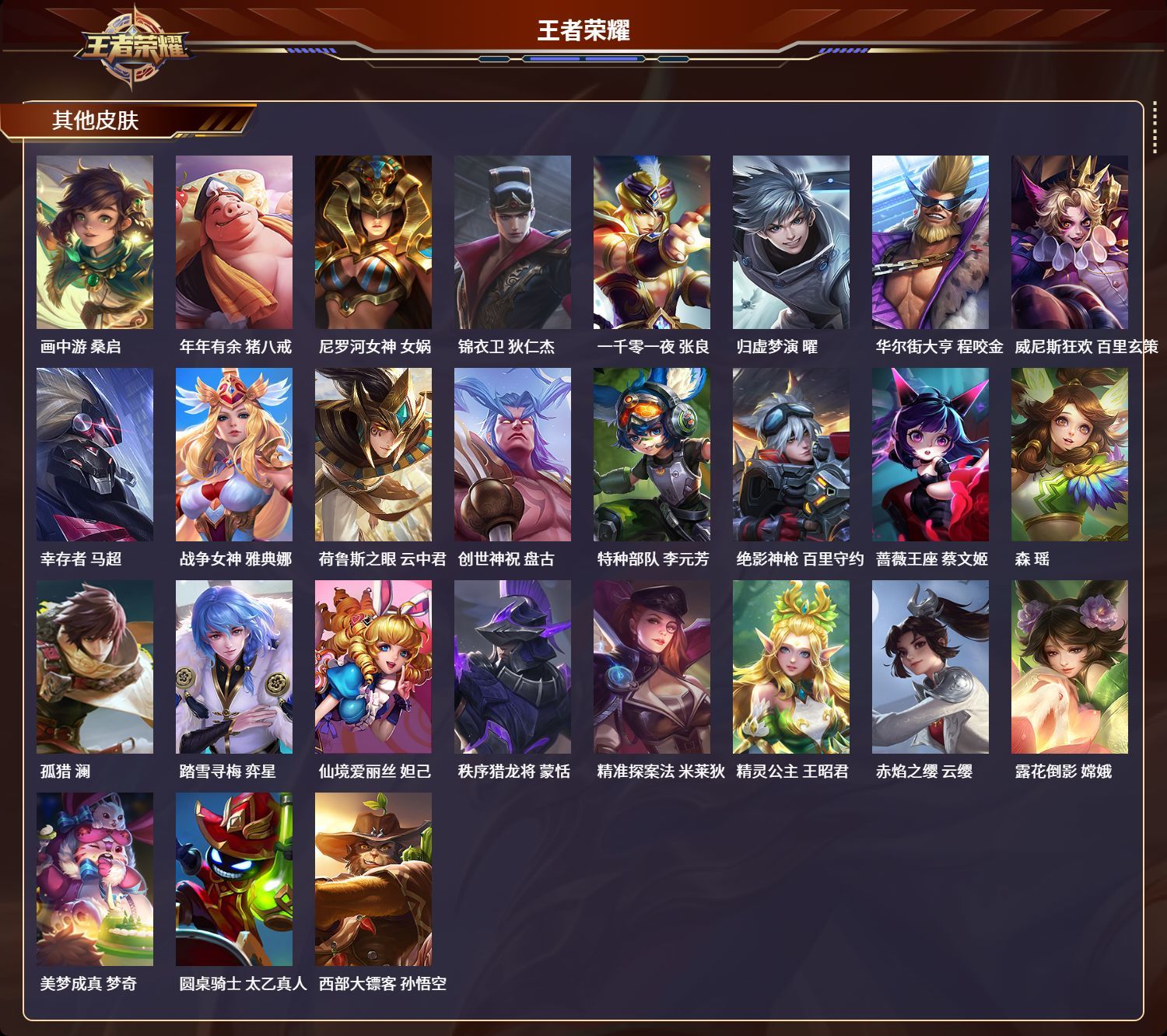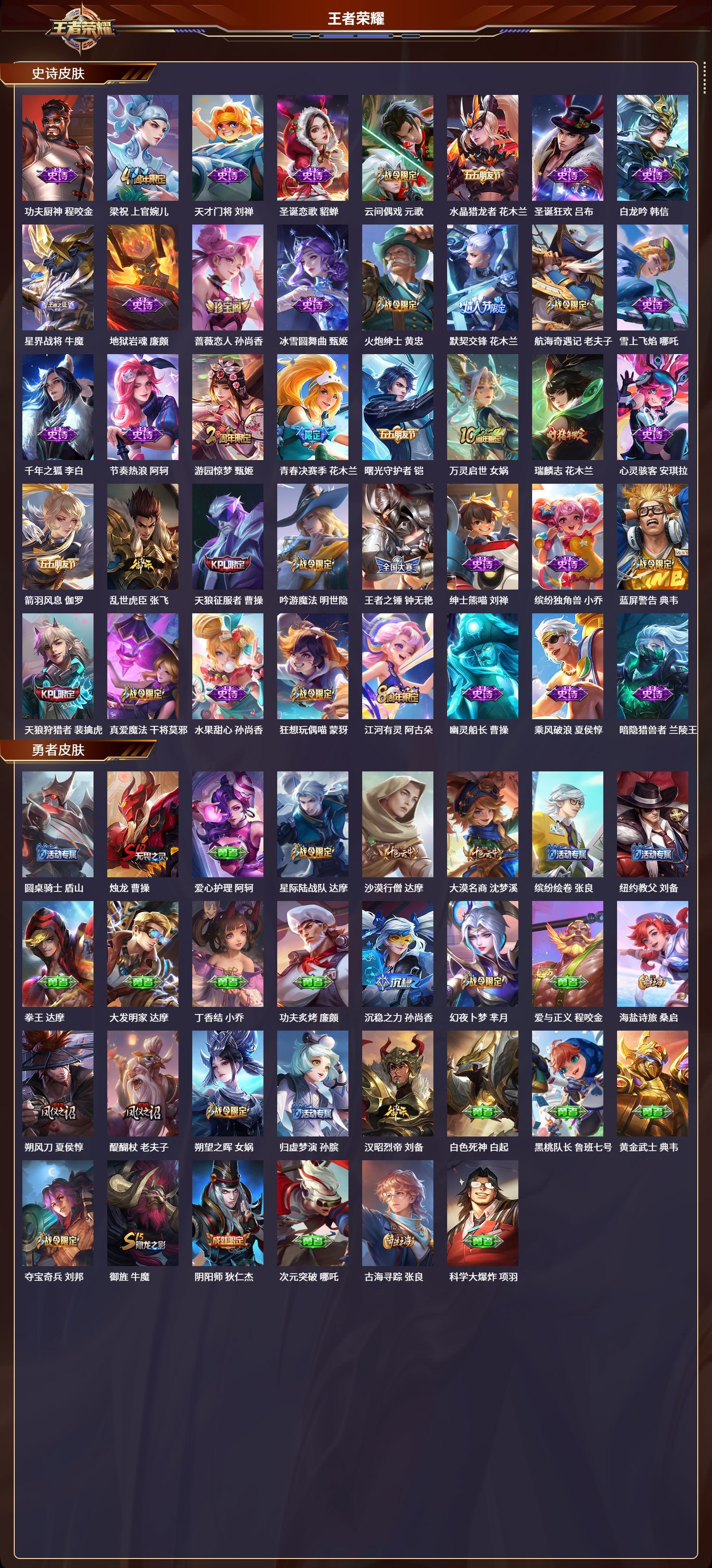 安卓QQ/非凡王者/307皮肤/126英雄/2典藏/0珍品无双/0无双/0珍品传说/16传说/92史