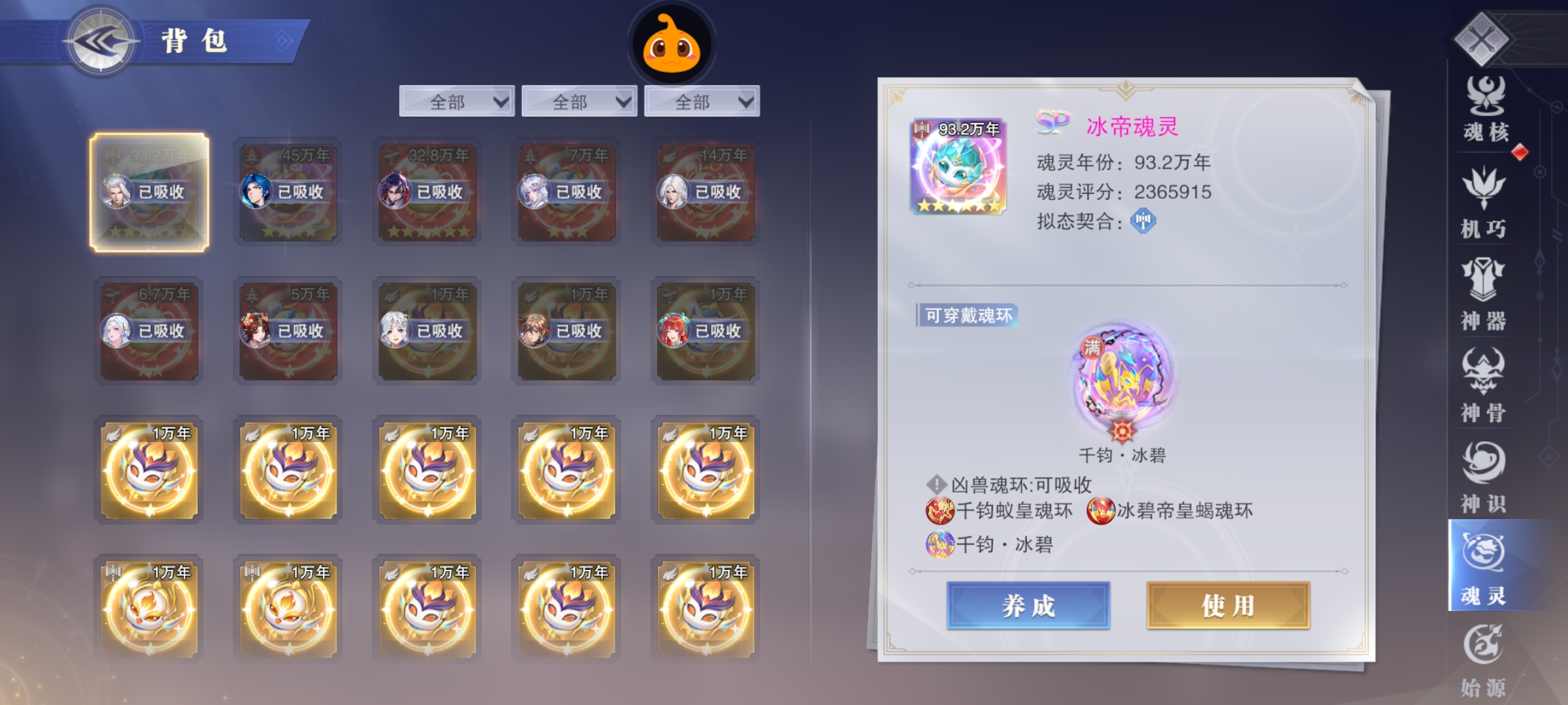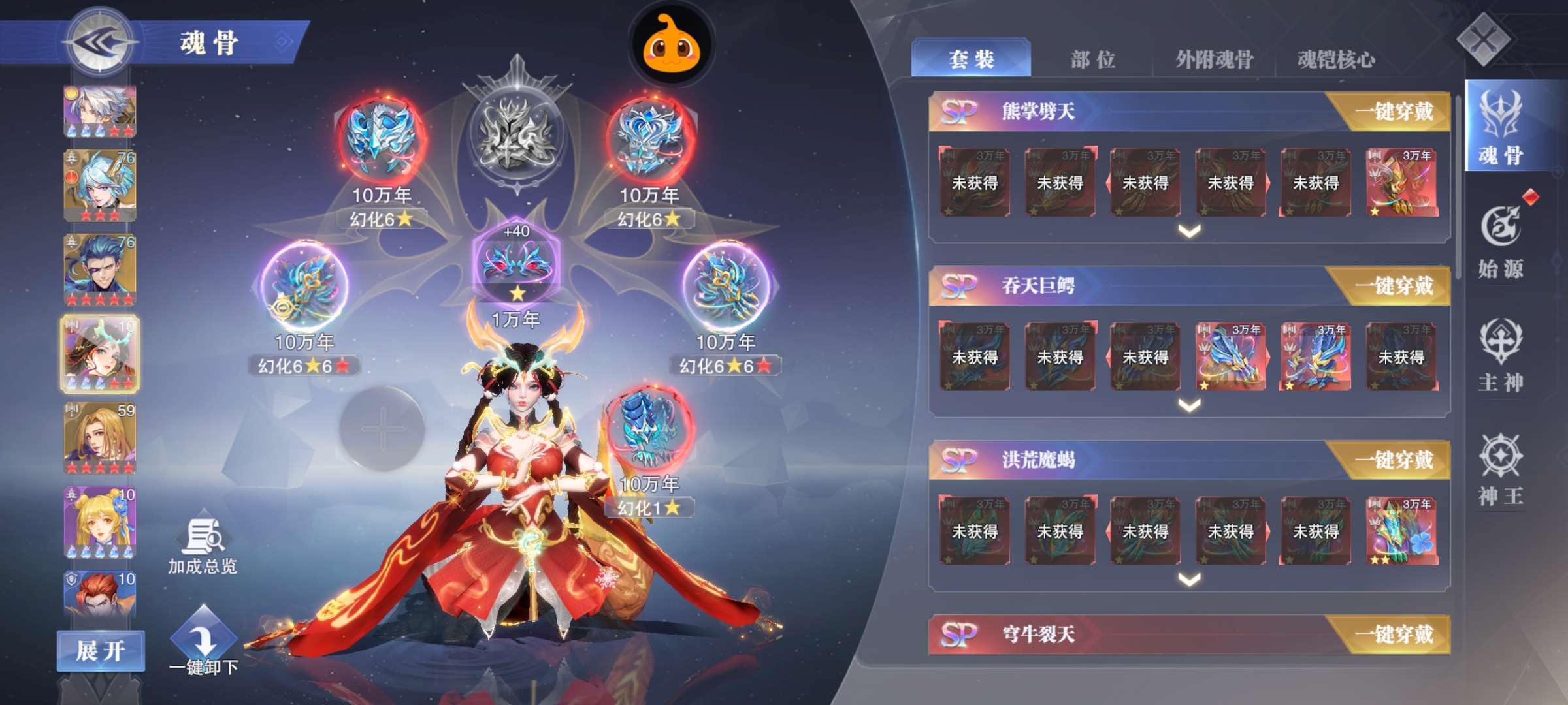 彩五万壑松风皮肤剑仙三专属!红胸针!2个sp魂灵!3sp战魂器!10神环!100万千钧!90万混沌