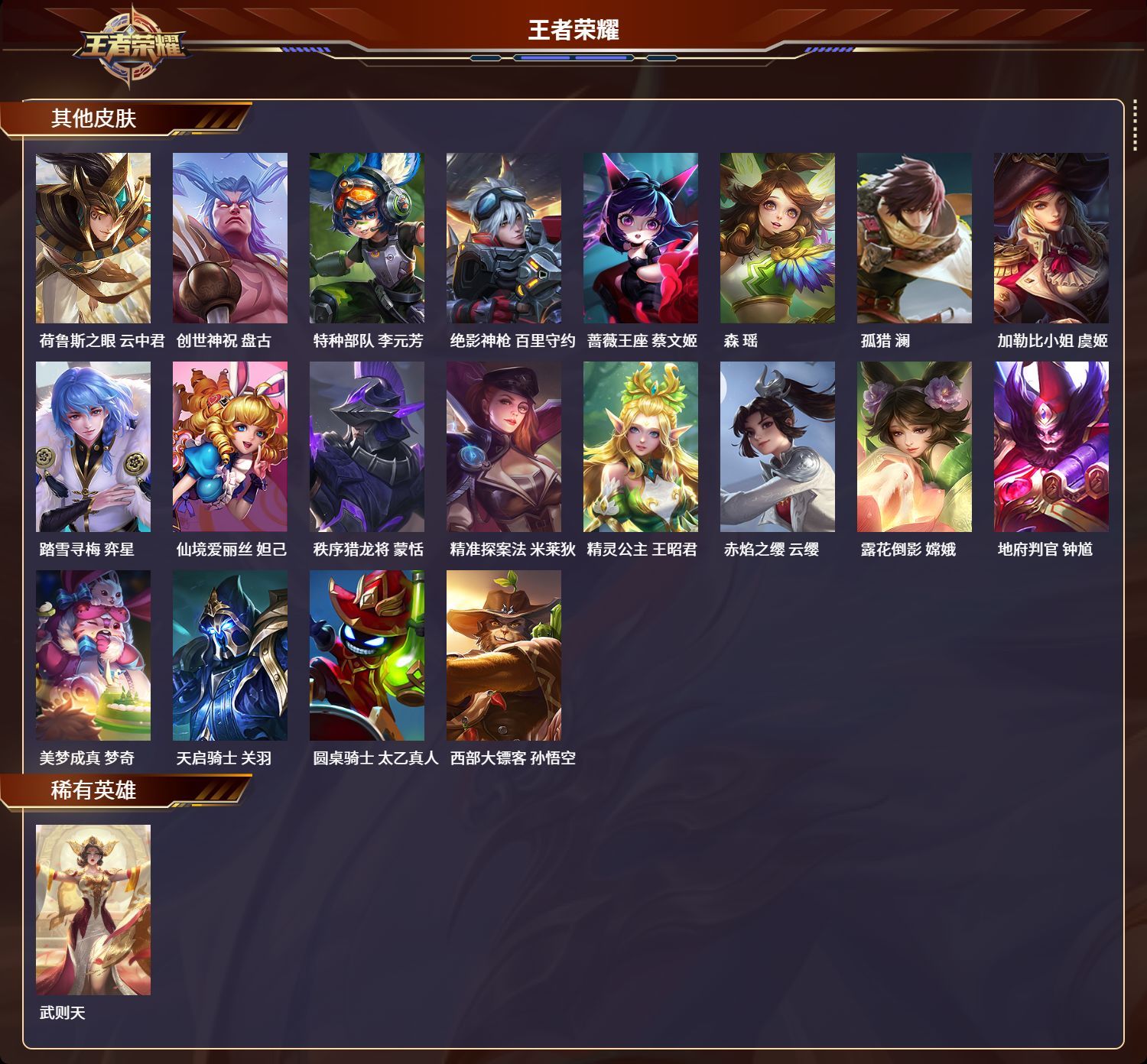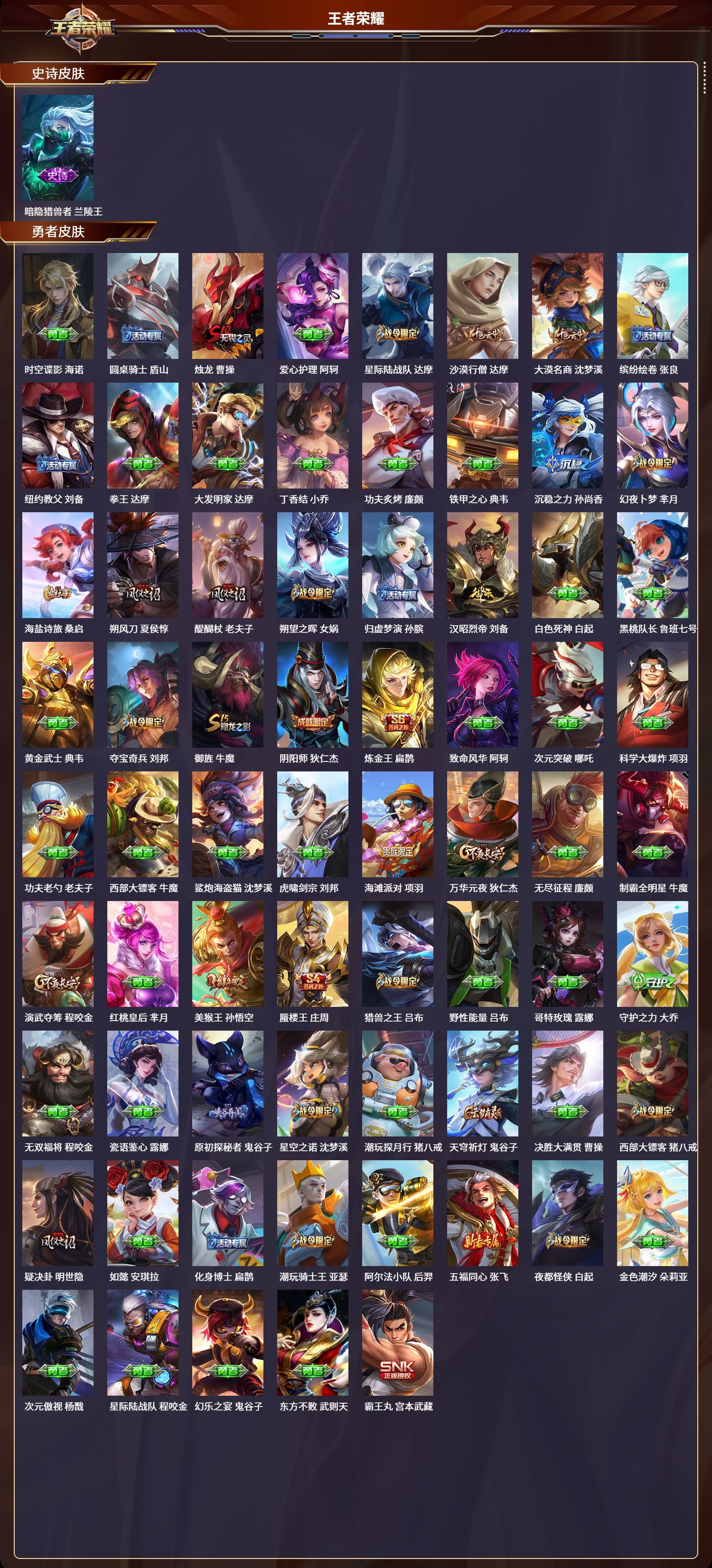 苹果QQ/永恒钻石/369皮肤/127英雄/2典藏/0珍品无双/2无双/1珍品传说/26传说/110