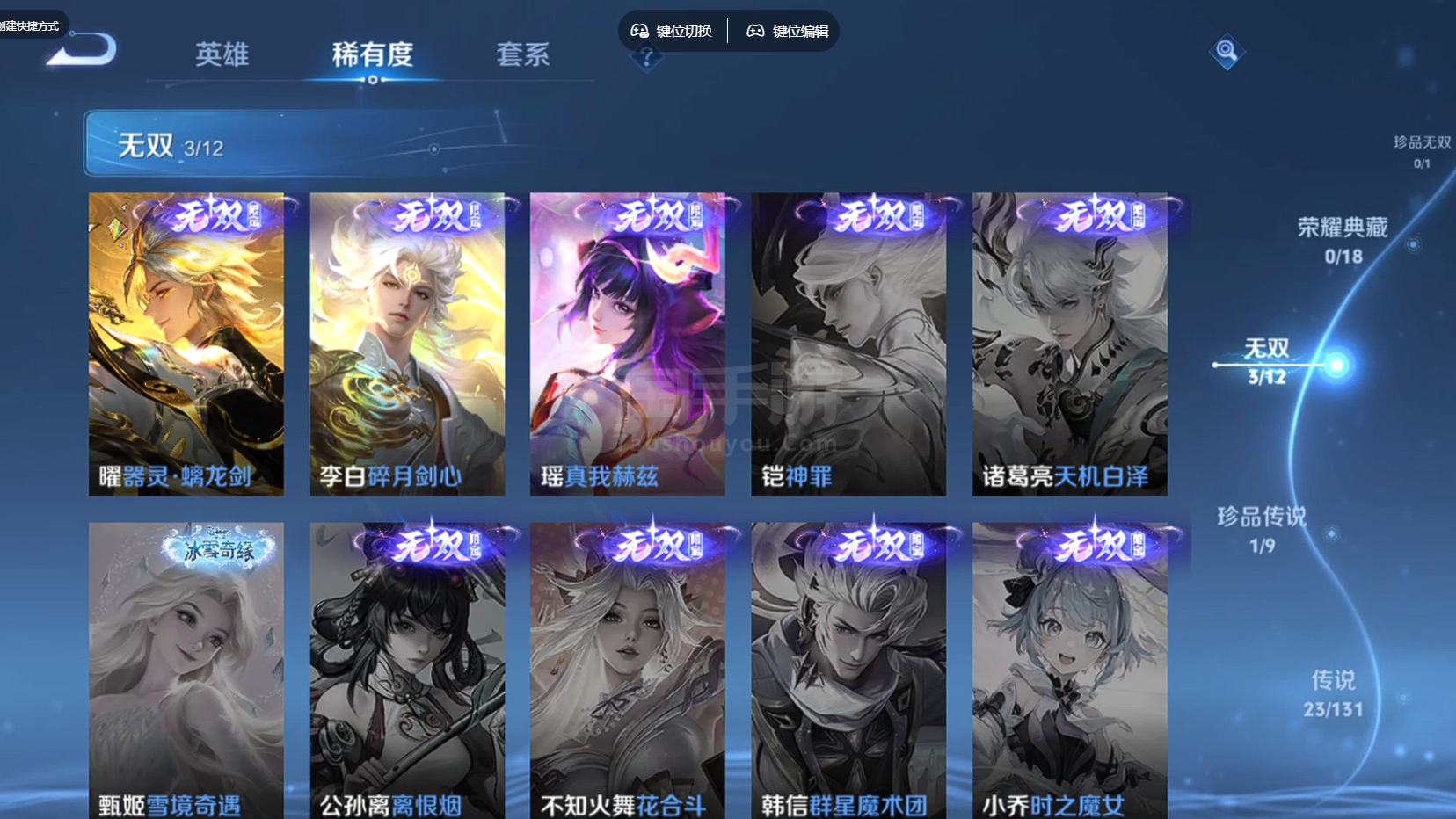 苹果QQ-可二次-贵族8-358皮肤23传说-3无双-1星传说-1小兵-13个按键127英雄-最强王者-