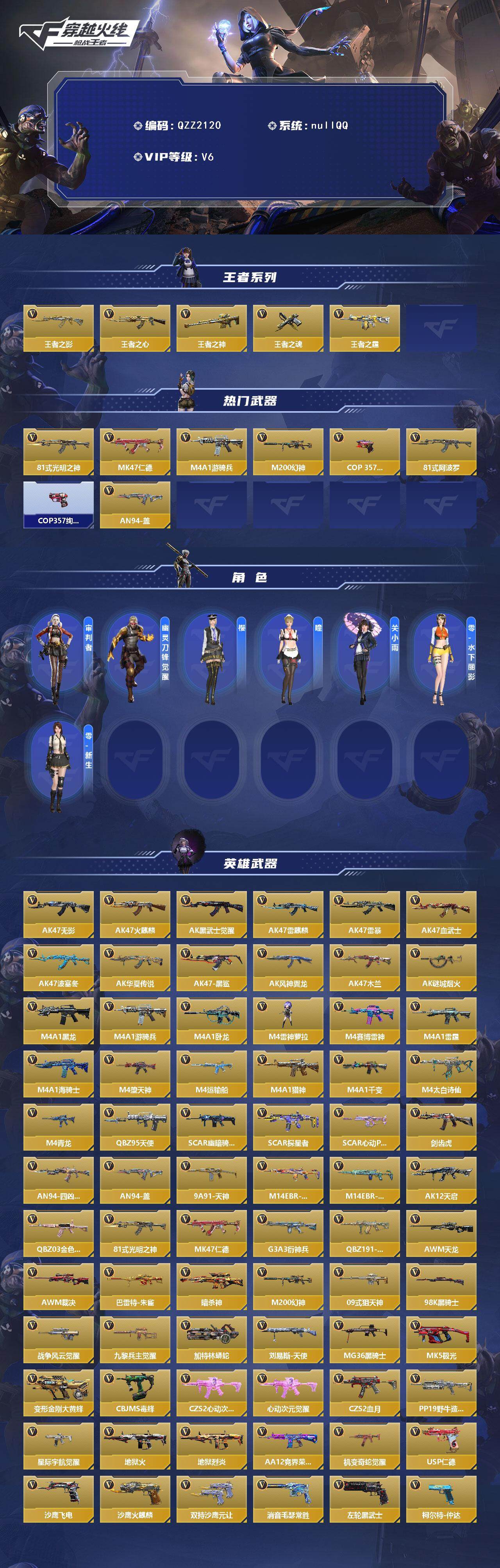 【QZZ2120】VIP6/201V/王者之影/王者之心/王者之神/王者之魂/王者之霆/81式-光明之神/MK47-仁德/M4A1-游骑兵/M200-幻神/COP 357-堕天神/81式-阿波罗/COP 357-绚樱/AN94-盖/审判者/幽灵刀锋觉醒/樱/瞳/关小雨/零水下丽影/零-新生/AK47-无影/AK47-火麒麟/AK47-黑武士觉醒/AK47-雷麒麟/AK47-雷暴/AK47-血武士/AK47-波塞冬/AK47-华夏传说/AK47-黑鲨/AK47-风神翼龙/AK47-木兰/AK47-