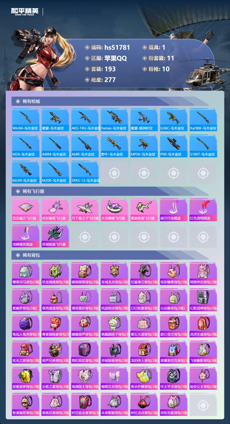 hs51781 苹果手Q-8王牌印记-11粉装-10特效枪-1载具-85569热力值-193套装-2