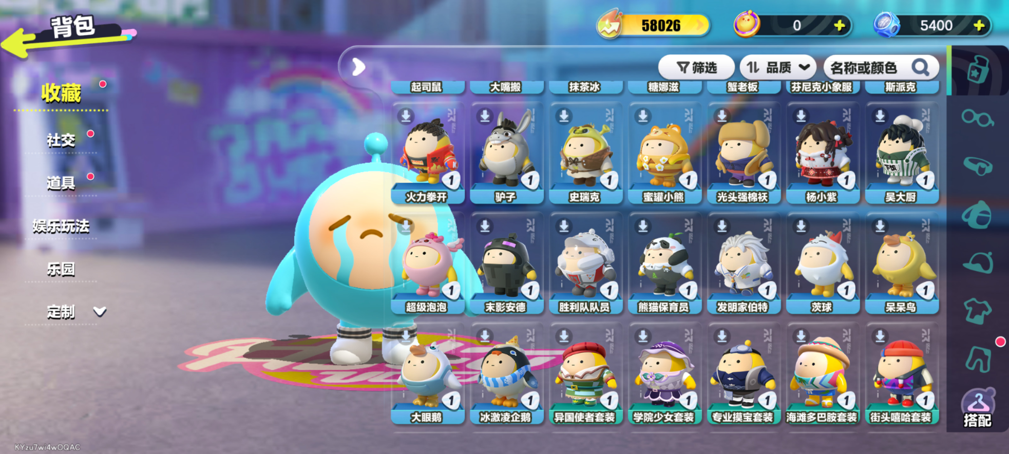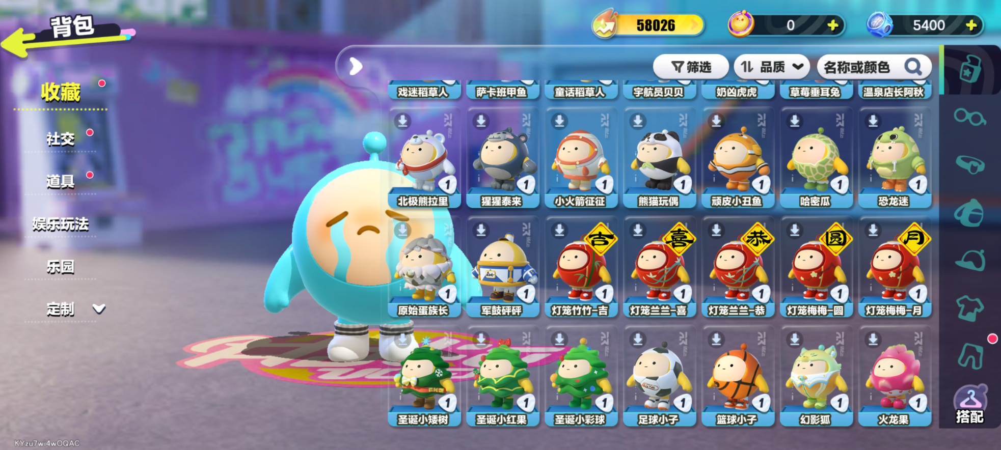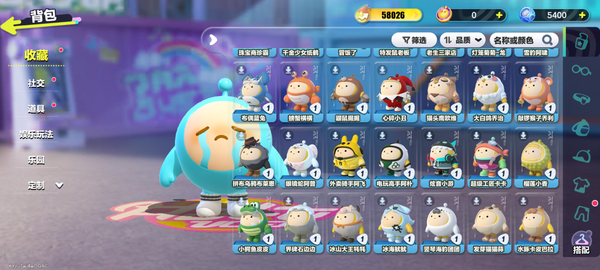 紫皮:劝学小子,大亨波利,猴吼吼,打菜侠妙妙,小福袋添运,元气丸子,袋鼠嘟宝,狸猫大力,松饼小红帽,淘气丸子,大娃,莓莓甜心兔,赞萌露比,音乐家蕾利,暹罗猫,极光女神典伊,小太阳葵葵,沸羊羊,美羊羊,小灰灰,刺猬绷绷,雪王,失心熊,仓鼠米仔,仔仔熊,圆圆子,饶舌诗人
