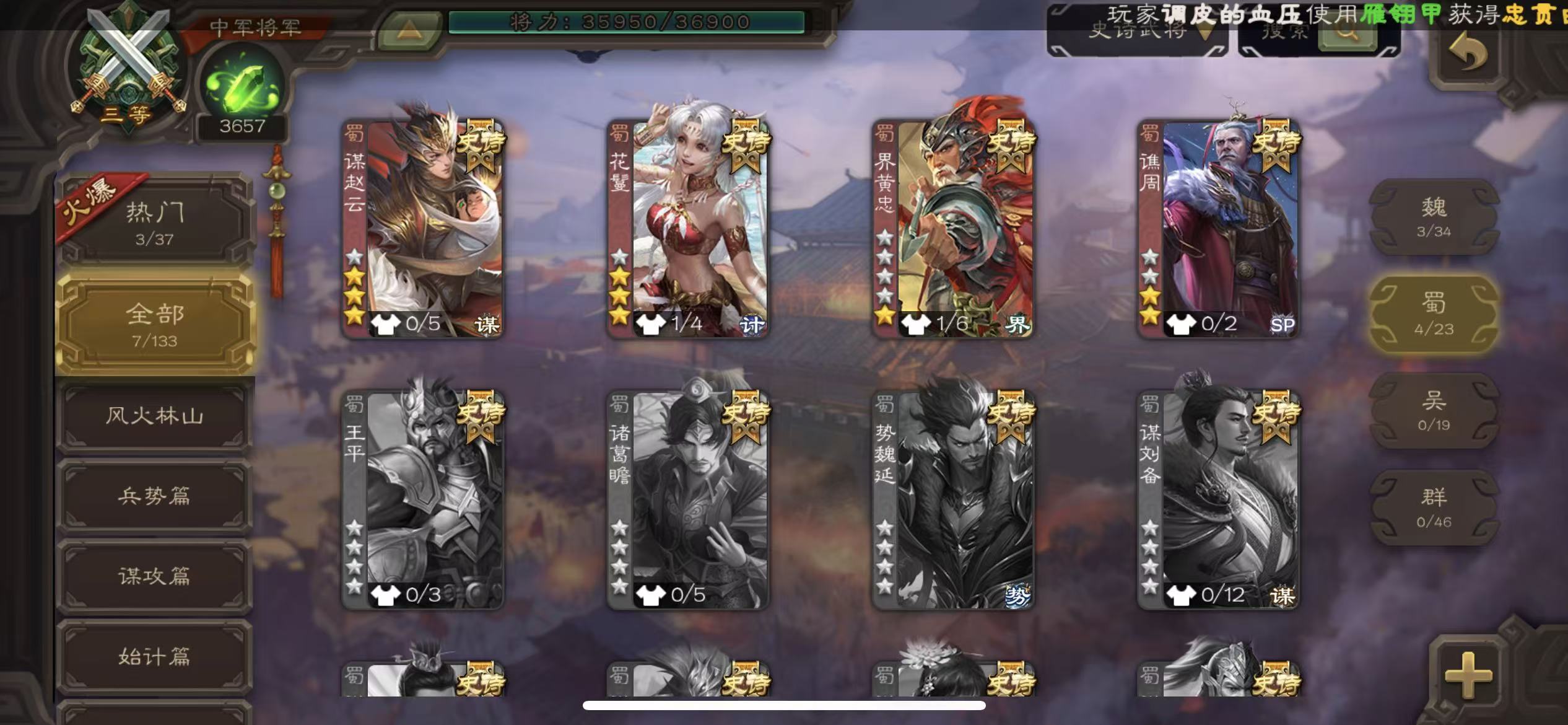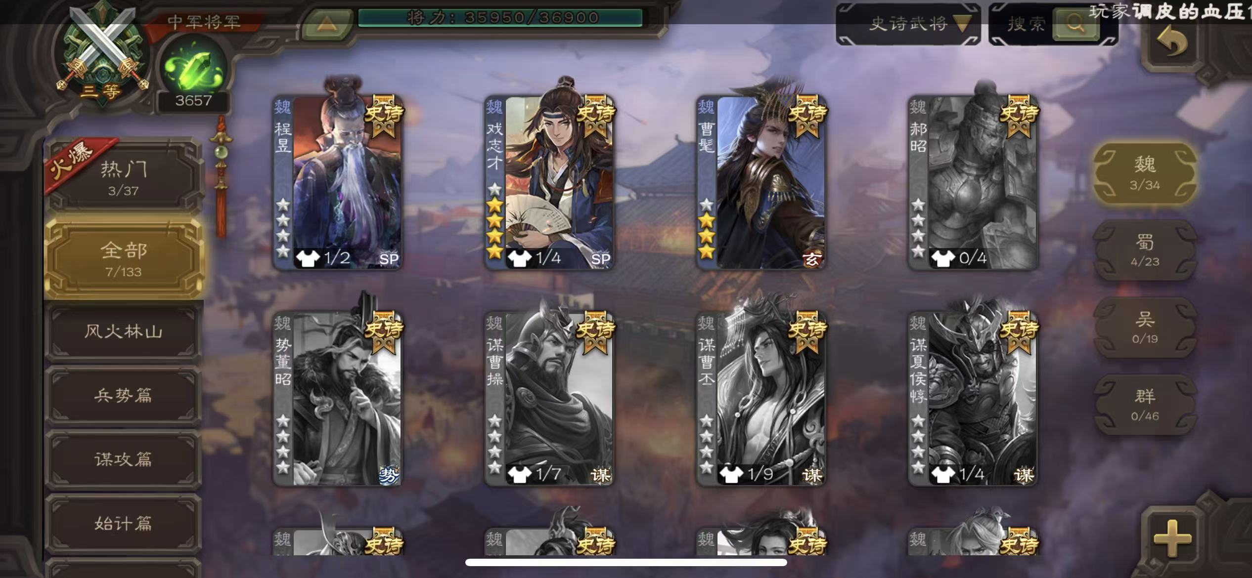 史诗武将数量: