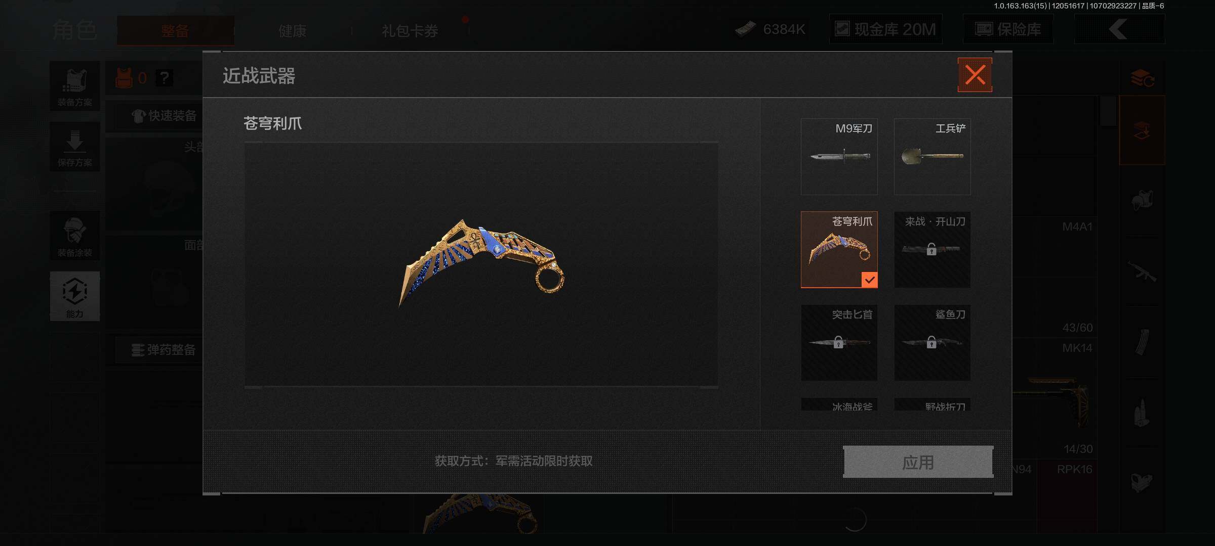 【AQZG610】等级:30/段位:暗区传说/仓库价值(百万):47/柯恩币:26384596/苍穹利爪/百炼恒常/工兵铲/骑士之剑AX50/利齿风暴MPX/浮鳞影青QBZ192