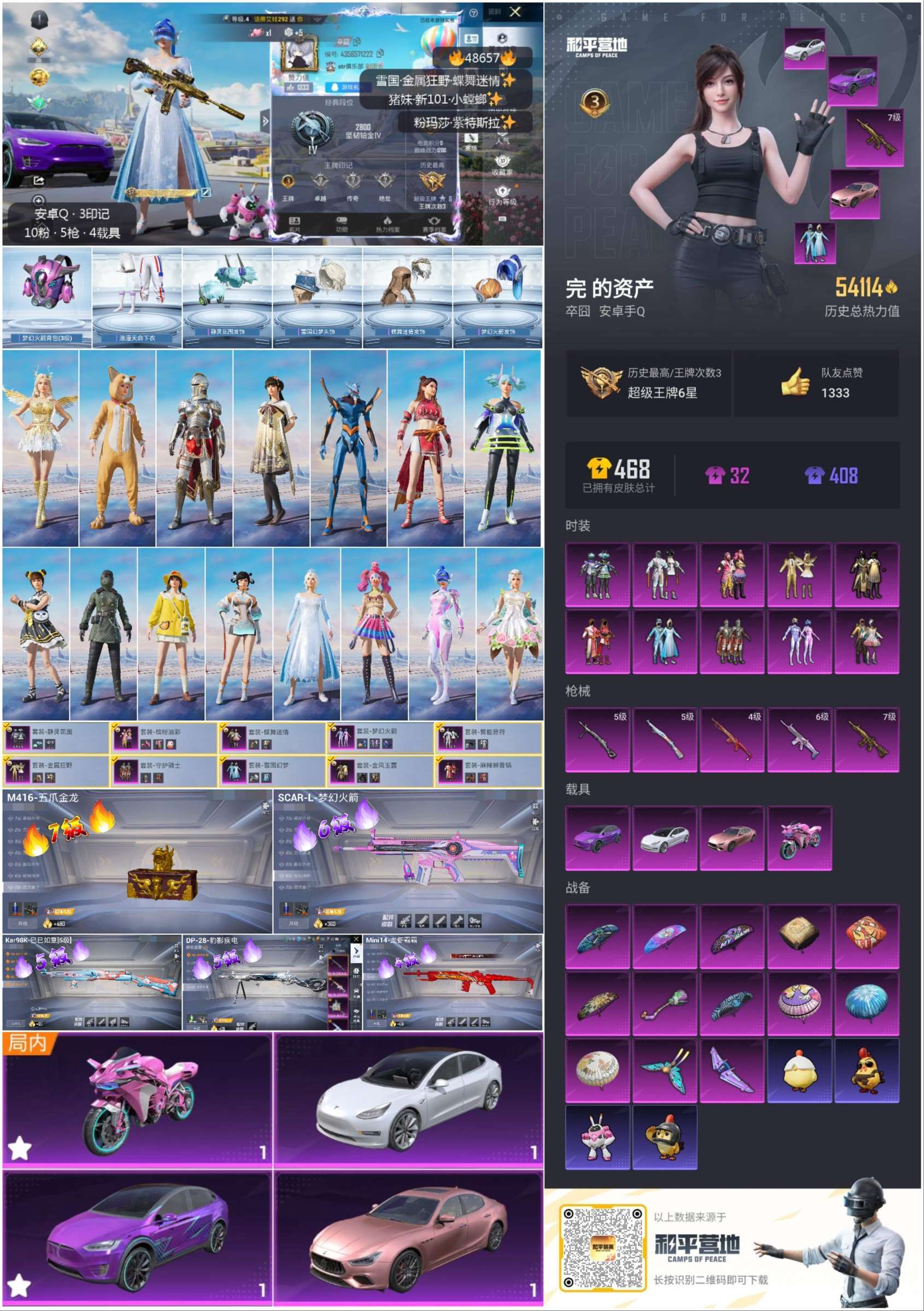 hs48657 安卓手Q-3王牌印记-10粉装-6特效枪-4载具-54917热力值-111套装-13