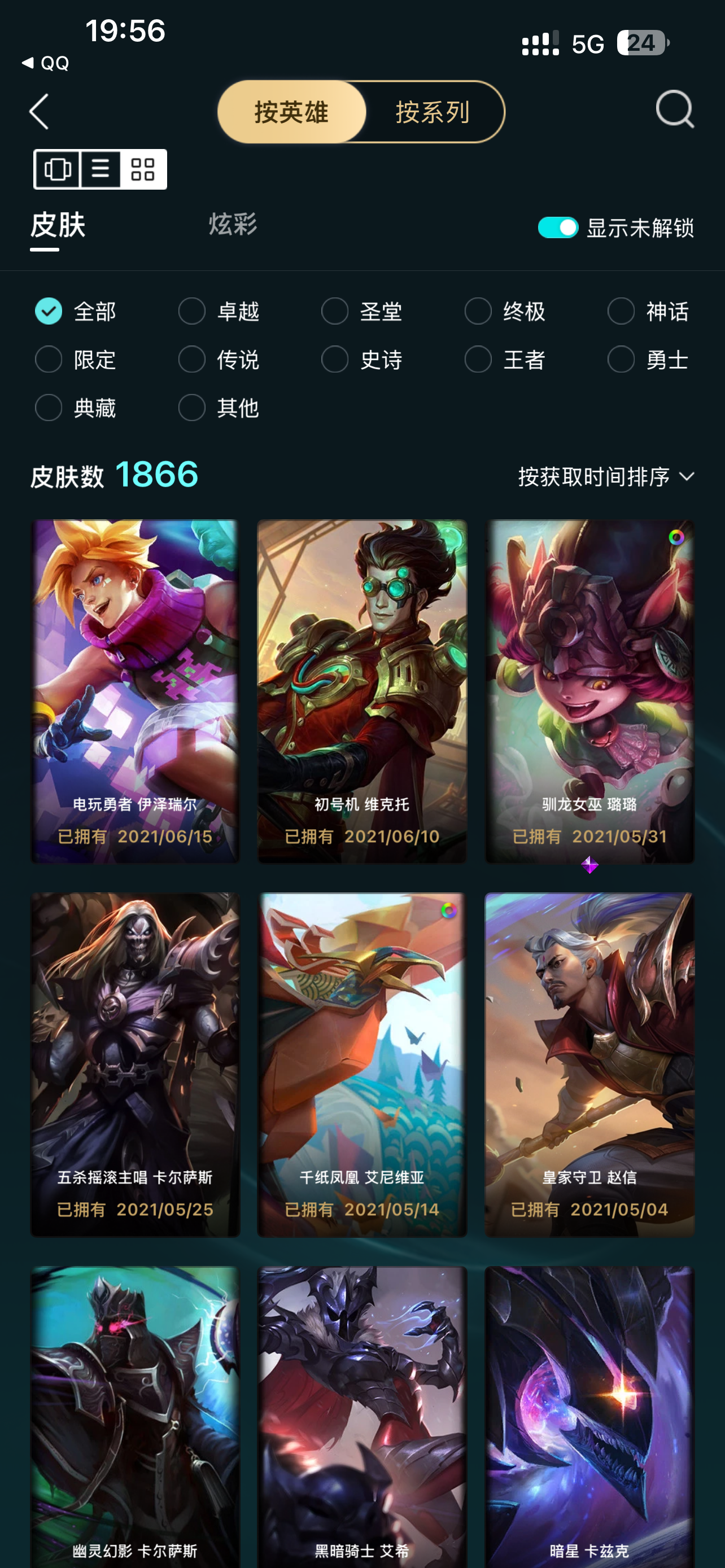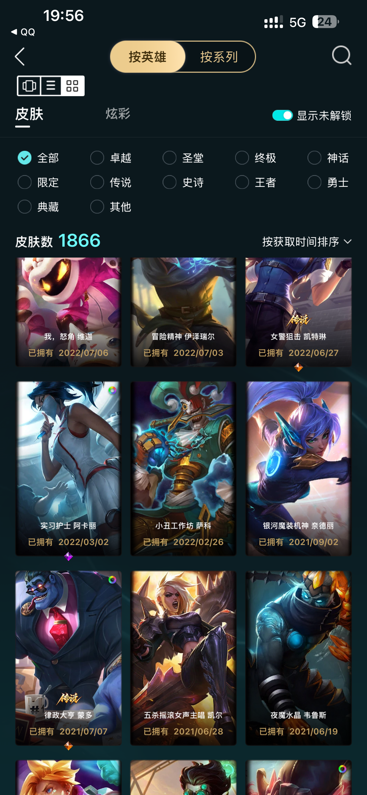 有两个区艾欧尼亚和黑设玫瑰。都市全英雄皮肤相差不大