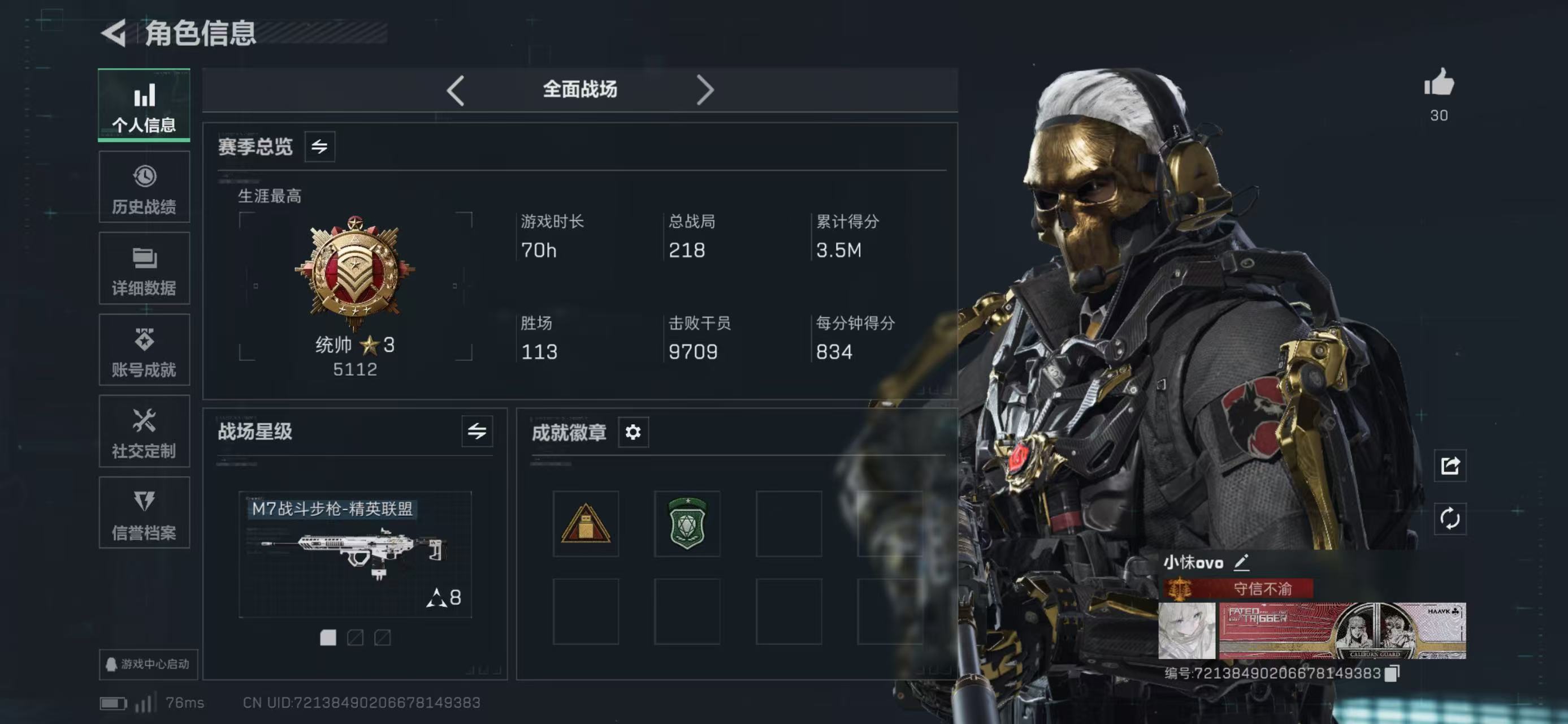 总资产200.49M,哈夫币 30074.93K,战场等级:50 军士长,行动等级:60 钻石,角色