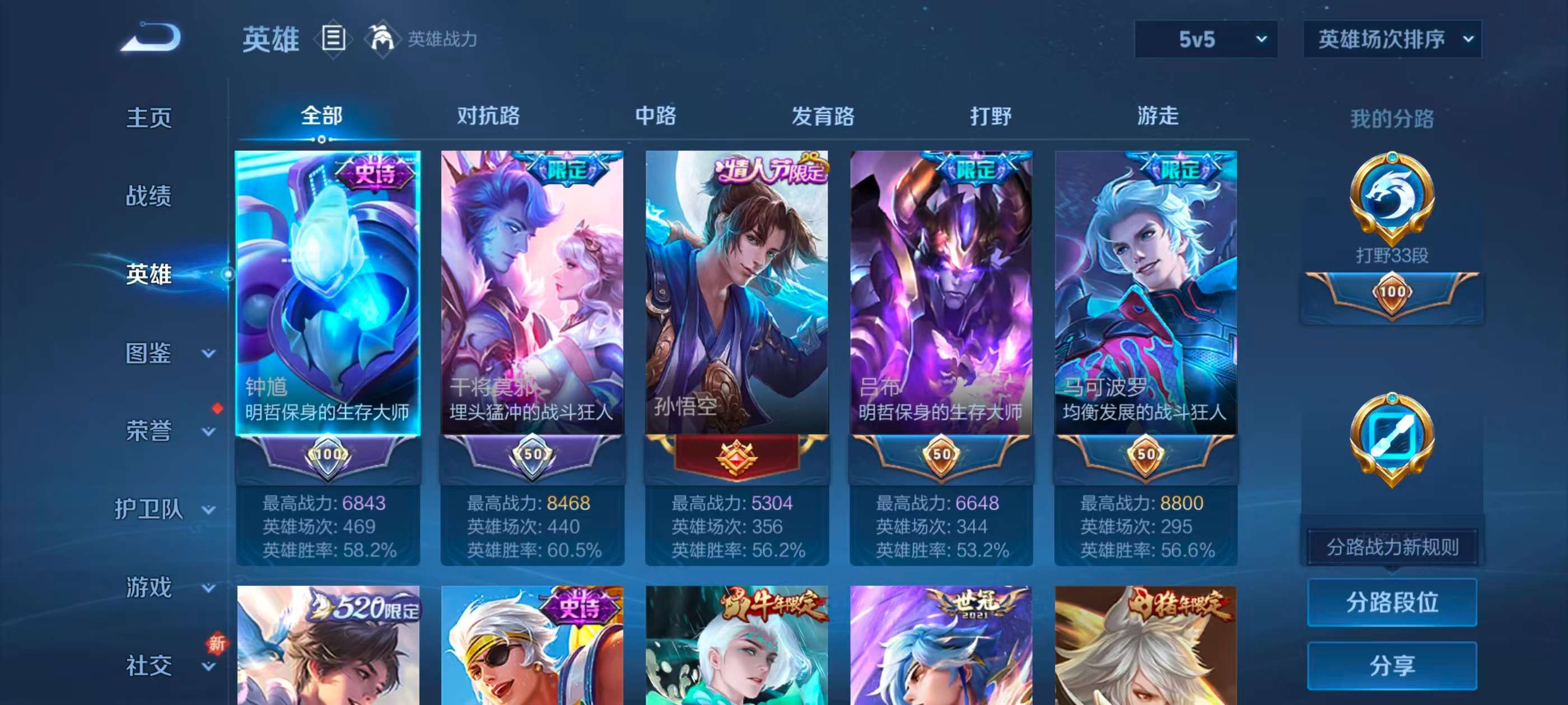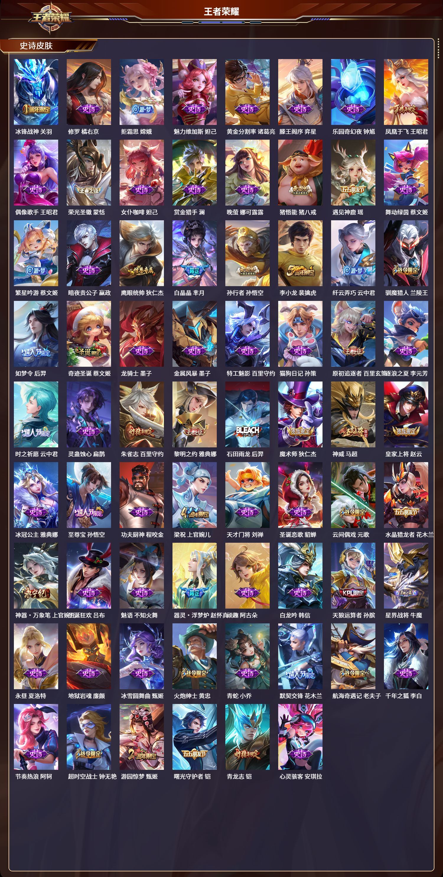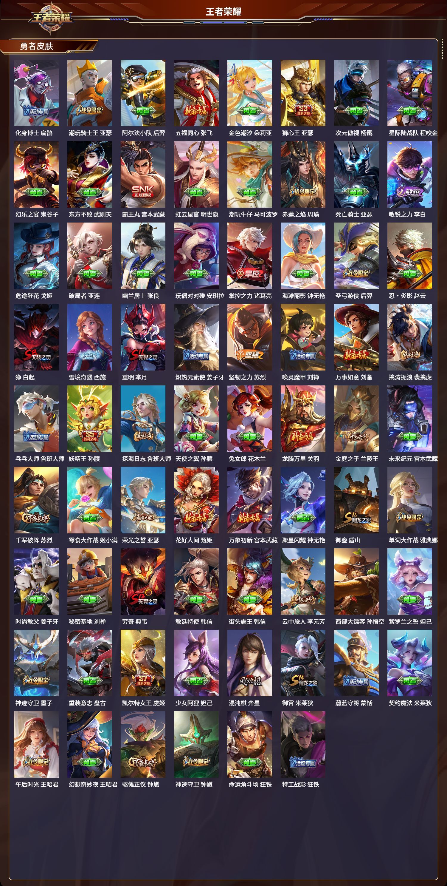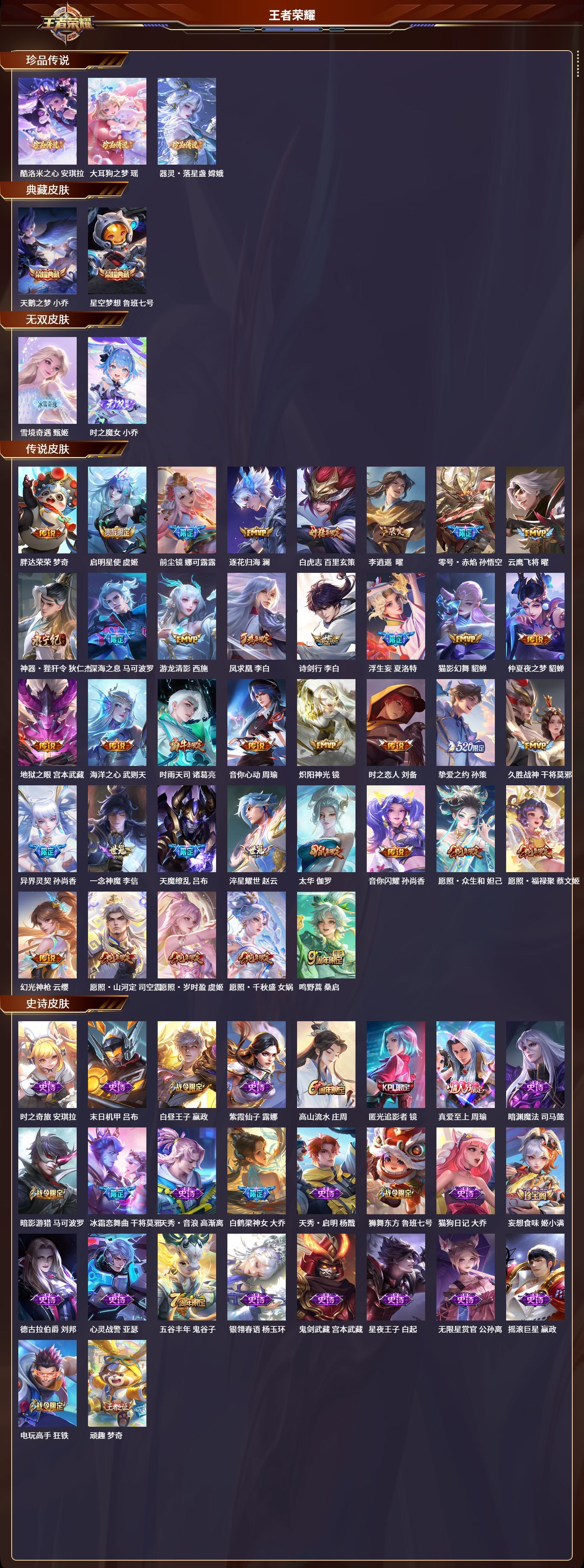 安卓QQ/无双王者/360皮肤/128英雄/2典藏/0珍品无双/2无双/3珍品传说/37传说/110