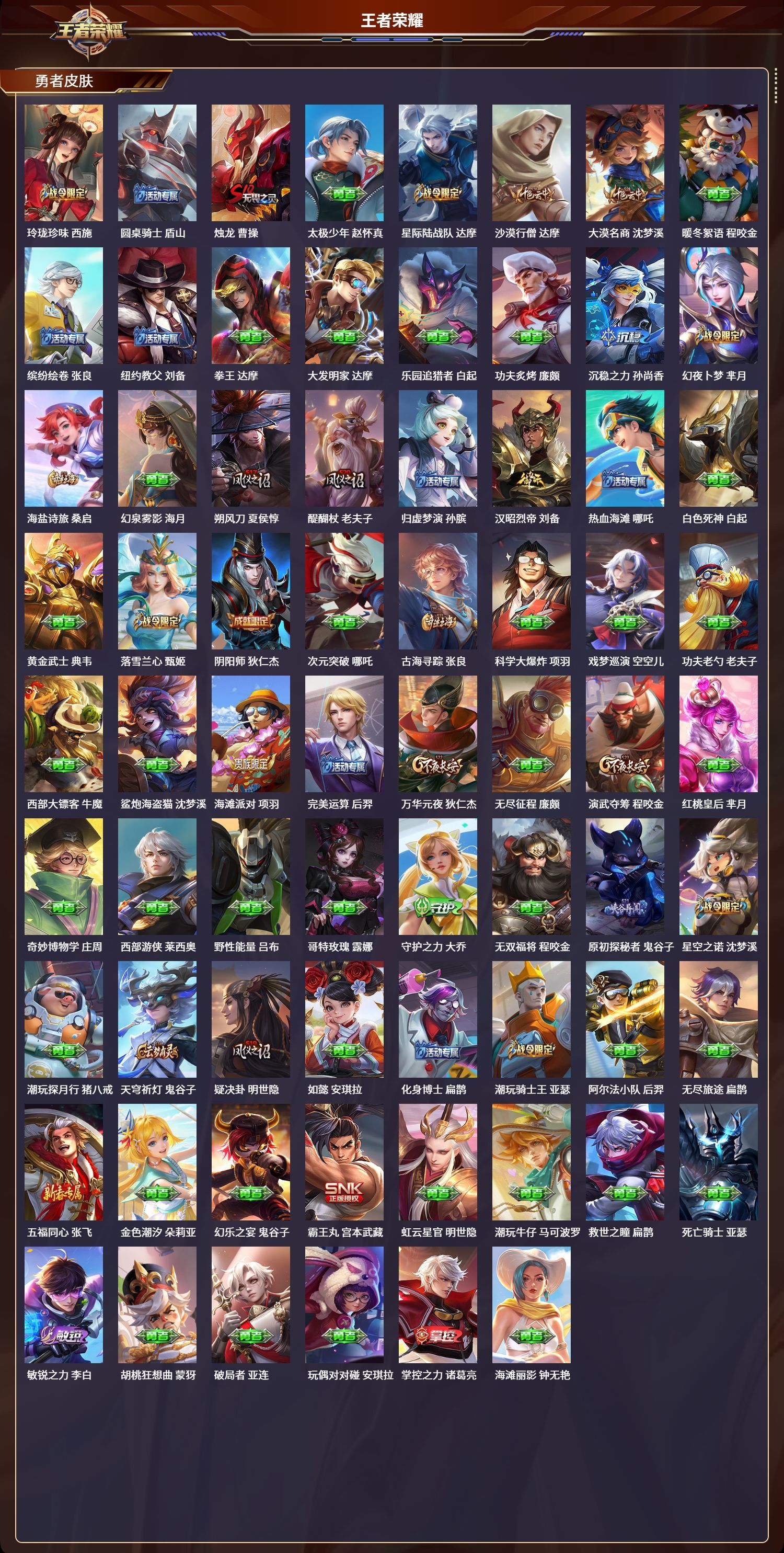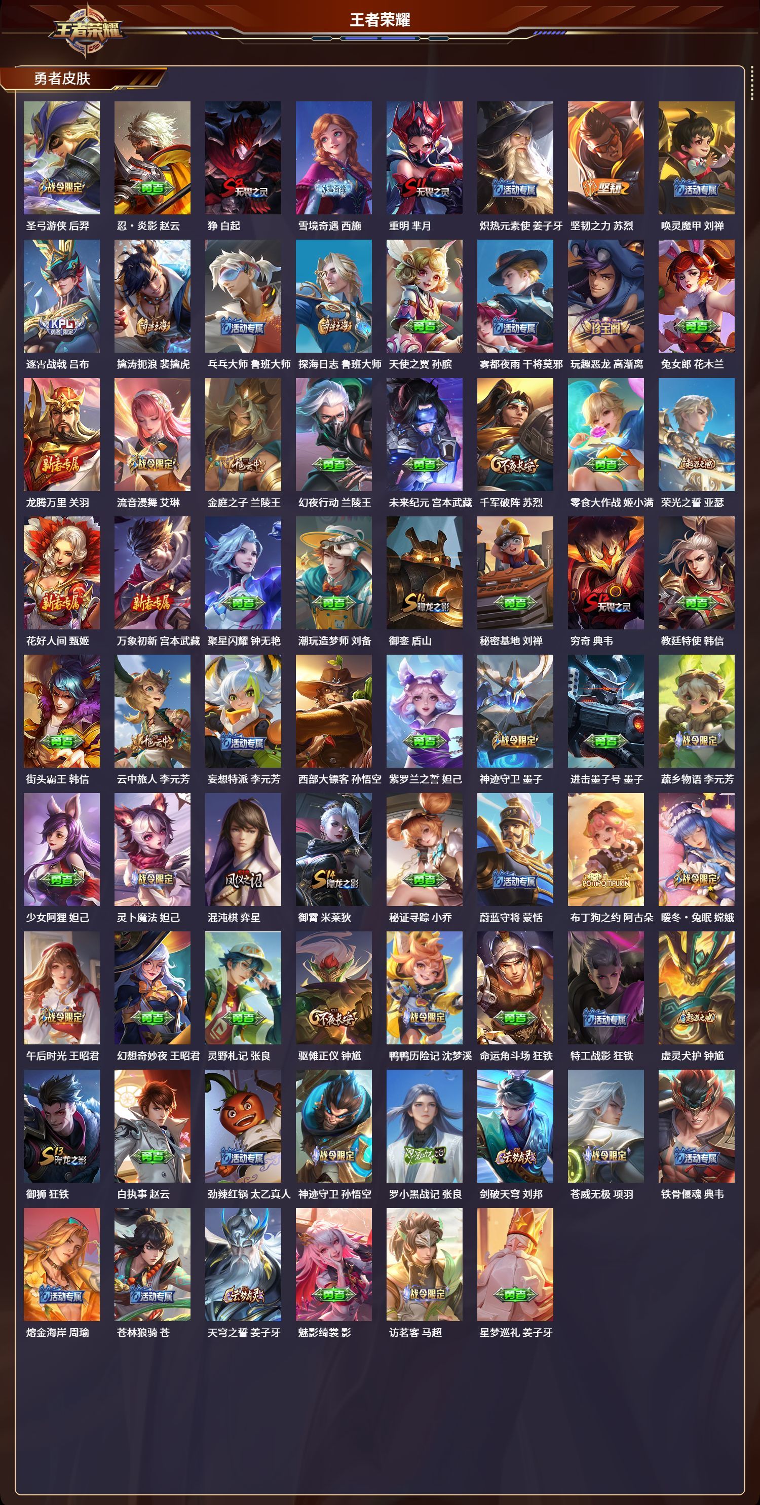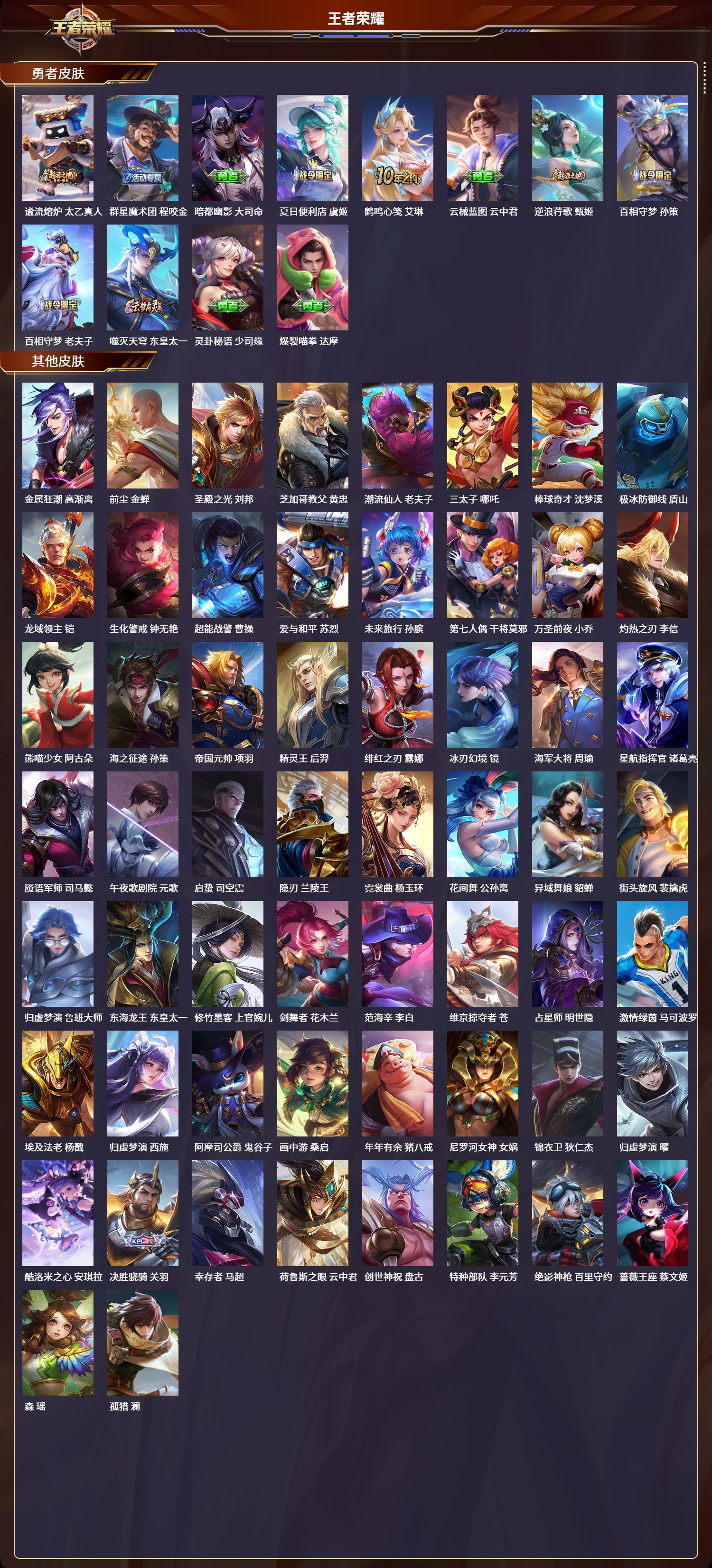 安卓QQ/荣耀王者/358皮肤/127英雄/2典藏/0珍品无双/0无双/3珍品传说/19传说/115