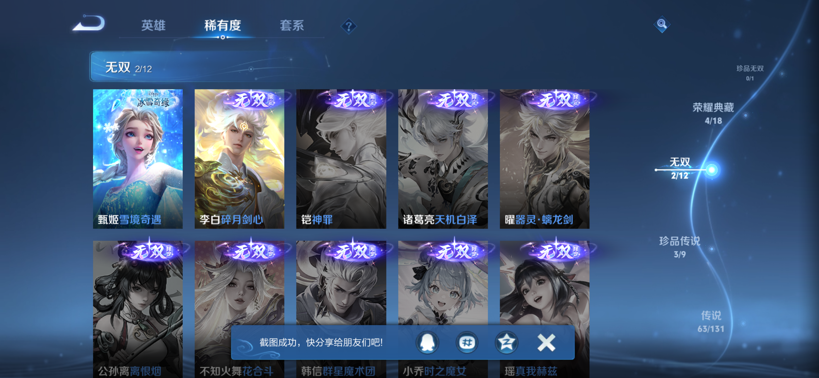 苹果QQ-5典藏-63传说-2无双-128英雄-荣耀王者-自用v10号上班了没时间玩了