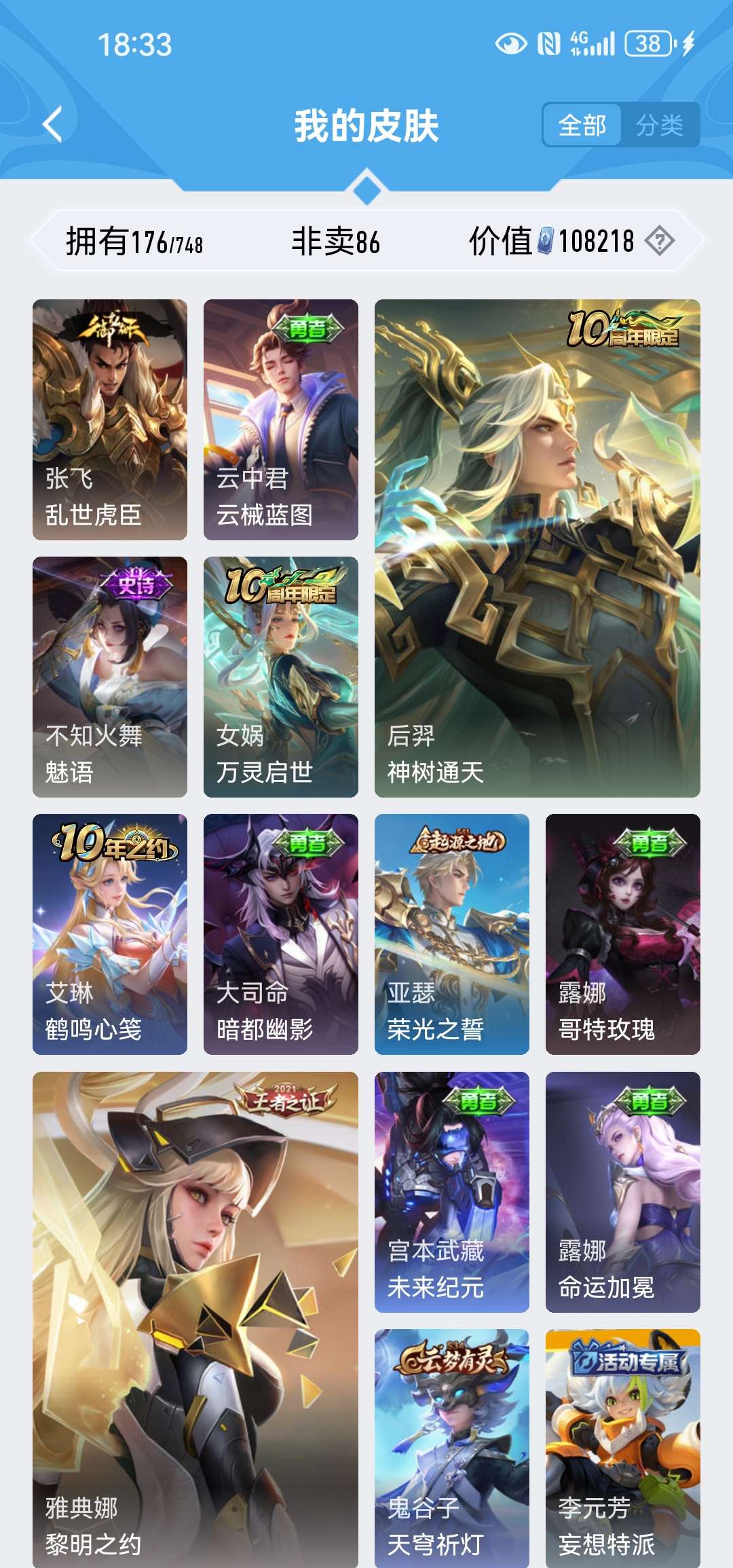 苹果QQ-4传说-176皮肤-125英雄-至尊星耀-有想要的赶紧联系!最低价