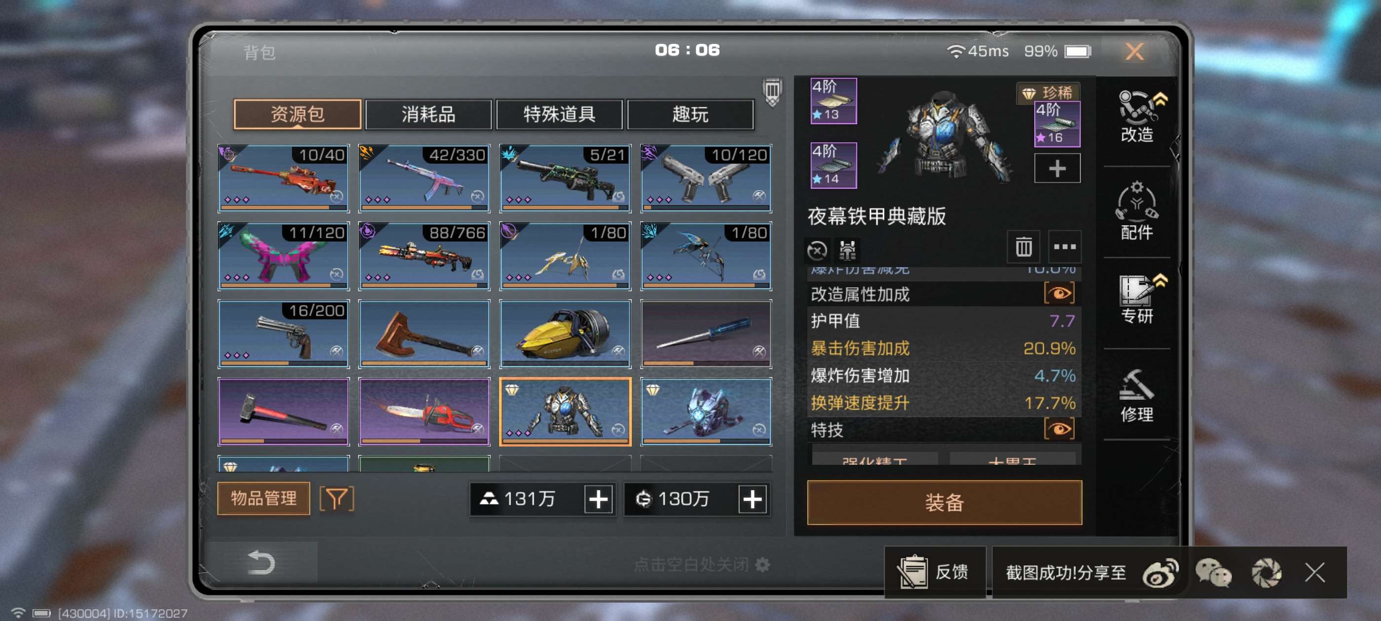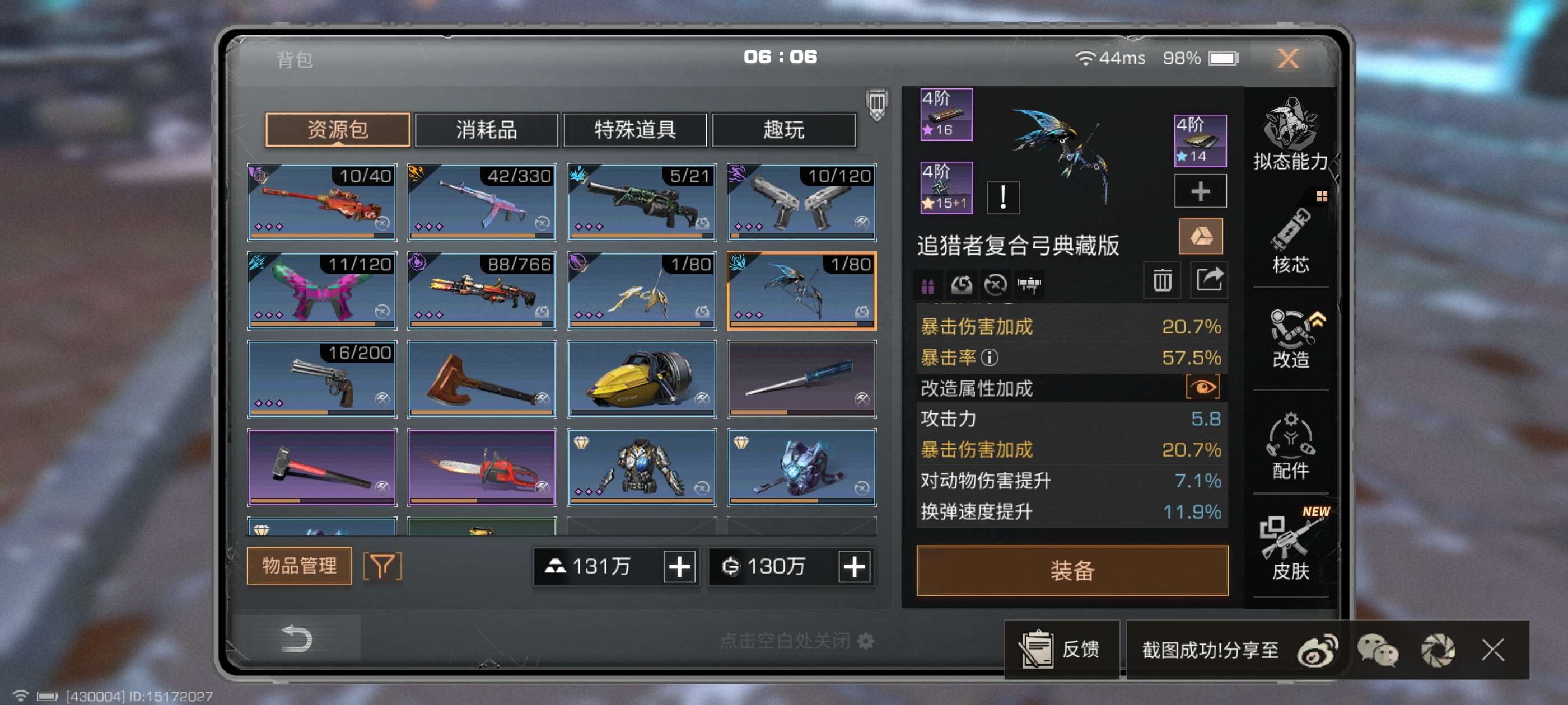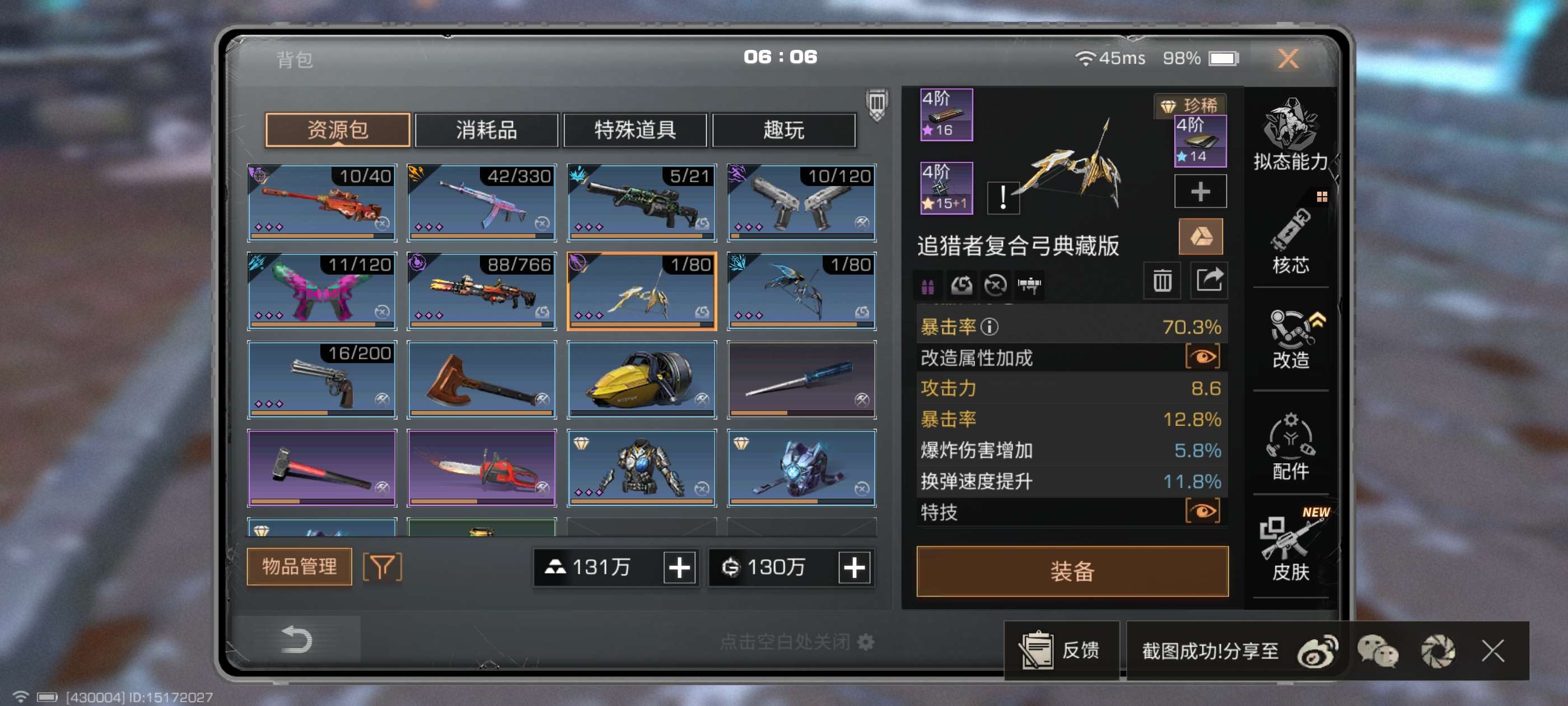 金色载具数量: