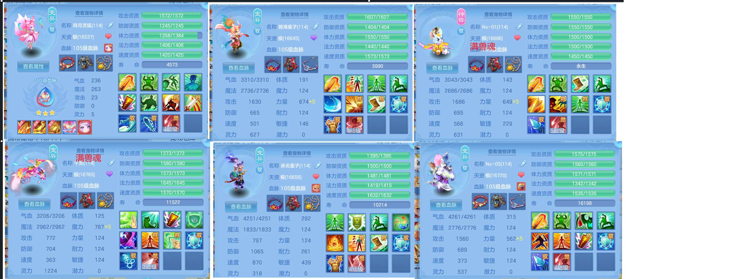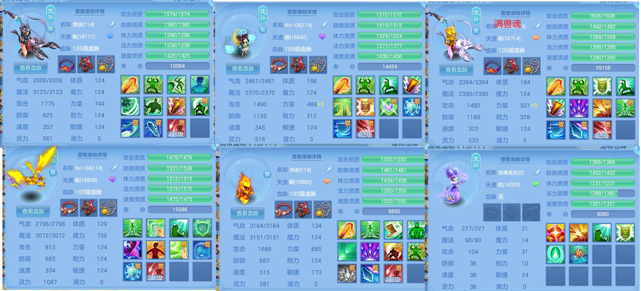 109顶配方寸,特技多多随意组合,两个内丹特技神兽,满资质满兽魂宝宝,很多天赋血脉