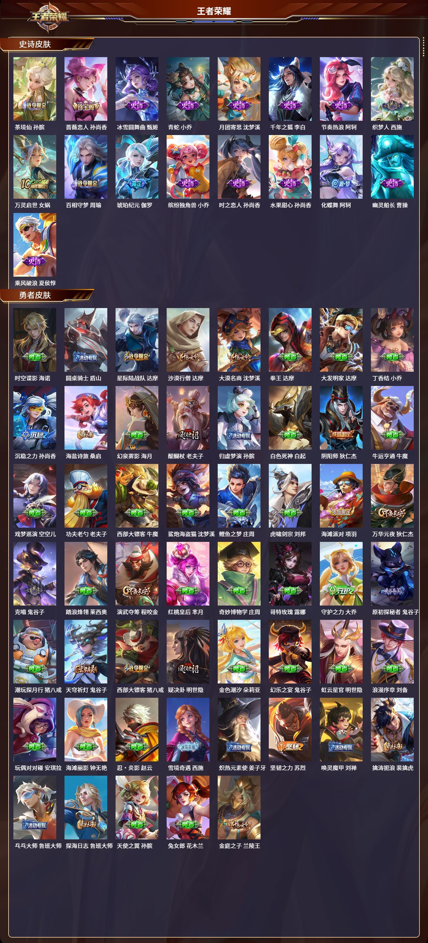 1典藏-12传说-4无双-236皮肤-127英雄-绝世王者 绝世王者/236皮肤/127英雄/1典藏/0珍品无双/4无双/1珍品传说/12传说/69史