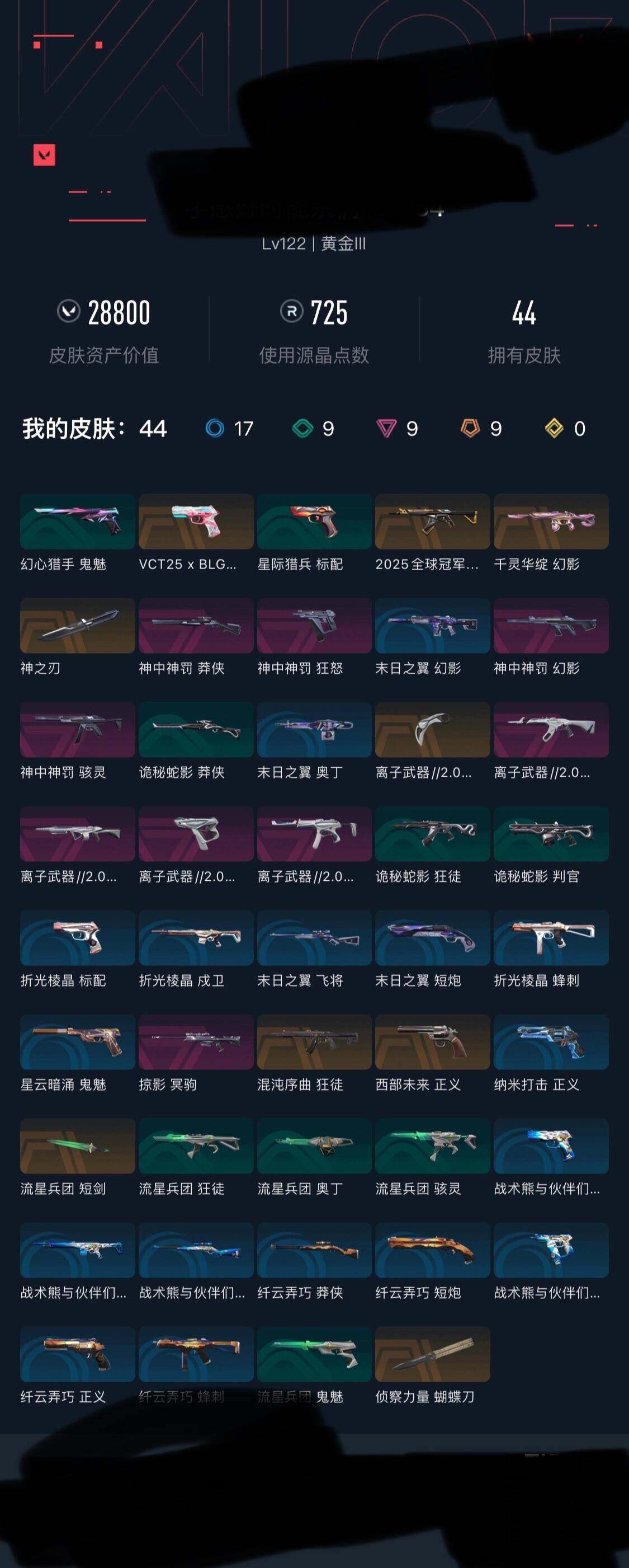 【WWN153】终极*9/卓越*9/皮肤*44/等级*122/段位:黄金/离子武器//2.0套装/神中神罚套装/幻棱/炼狱/维斯/暮蝶/钛狐/壹决/铁臂/捷风/雷兹/幽影/不死鸟/贤者/猎枭/蝰蛇/零/芮娜/奇乐/尚勃勒/霓虹/斯凯/夜露/星礈/K/O/海神/盖可/黑梦/钢锁/近战武器-神之刃/近战武器-侦察力量 蝴蝶刀/近战武器-离子武器//2.0 爪刀/近战武器-流星兵团 短剑/狂徒-2025全球冠军赛/狂徒-混沌序曲/狂徒-离子武器//2.0/狂徒-流星兵团/狂徒-诡秘蛇影/幻影-千灵华绽